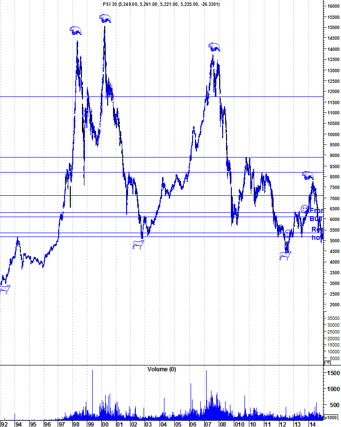 Aqui ficam os gráficos actualizados do PSI, numa altura em que o principal índice português vai "flirtando" com a sua primeira zona de resistência.