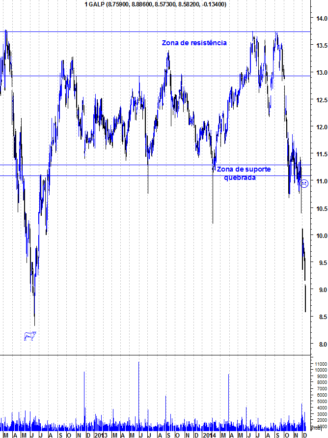 Quem tem tentado apanhar esta autêntica "faca a cair" tem sido esmagado pela força dos ursos. desde a quebra da zona do suporte,a Galp já caiu cerca de 25% em poucas sessões.