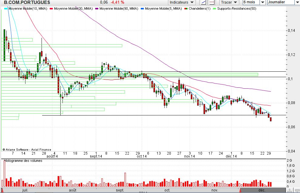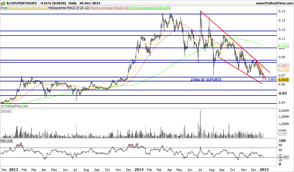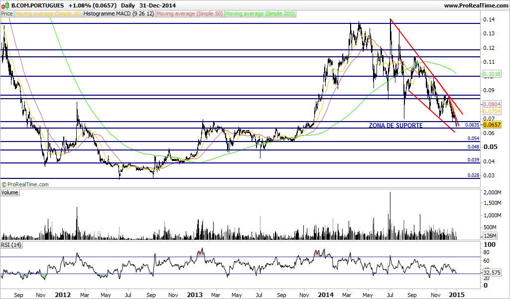 Gostava que tivesse fechado o ano acima dos 0.07€ e o PSI acima dos 6000€ como disse, mas é impossível, desta forma os suportes são visíveis. O Novo Banco deve ter propostas baixas (embora já descontando 1B com BESI e Imobiliários e restante grupo), com Angola e África a sofrer, o BCP precisa de bons resultados em Fevereiro. A incerteza com o Novo Banco não ajuda.