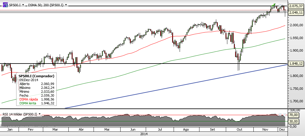 Não há muito para acrescentar ao dia de ontem, uma subida forte um pouco acima da zona de resistência 2050/2055 e descida mais rápida de volta. Ainda assim o dia terminou positivo no SP500 e portanto negativo para a minha carteira !!!