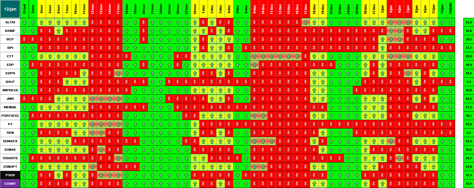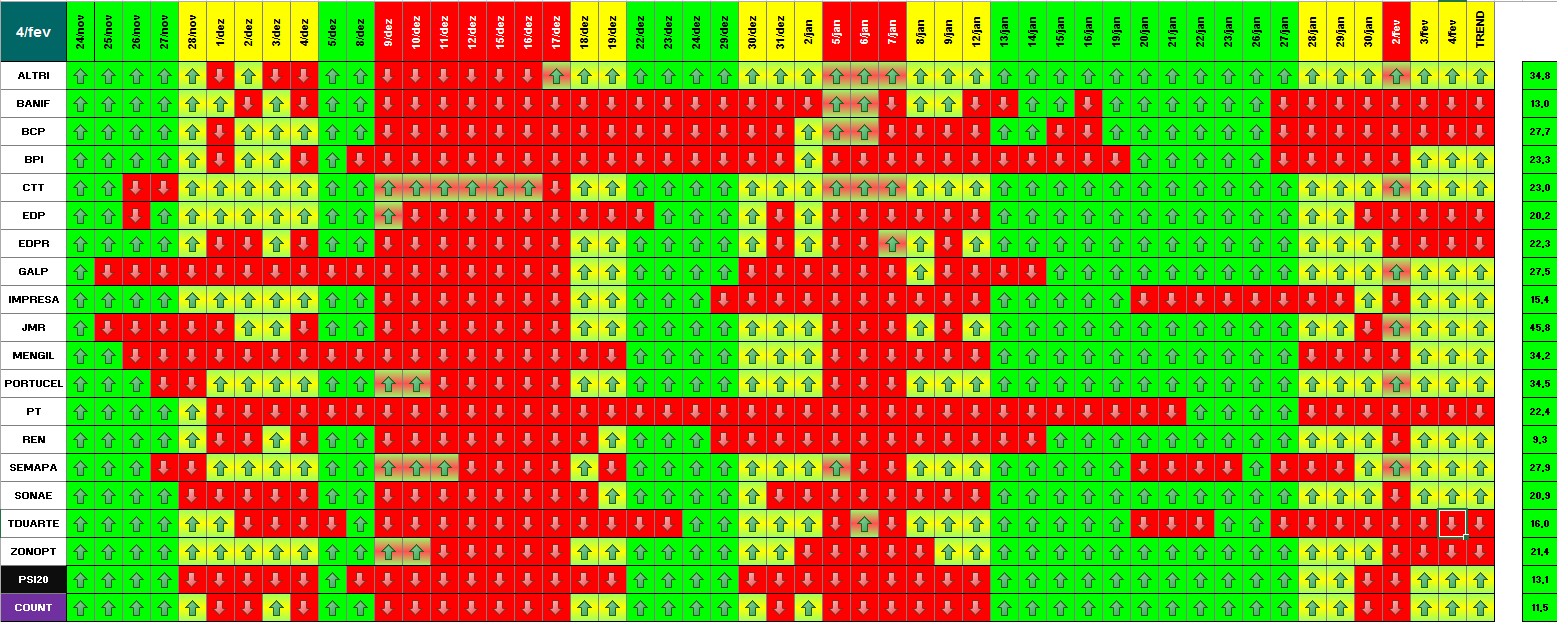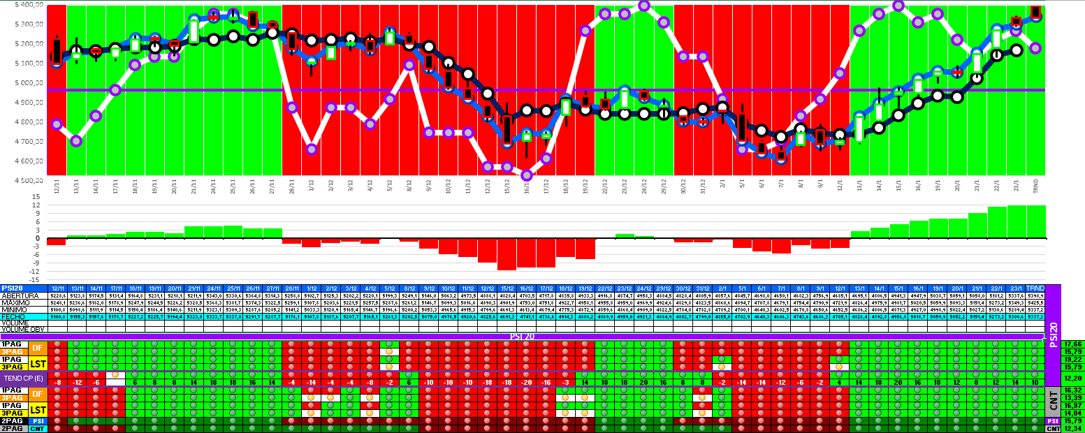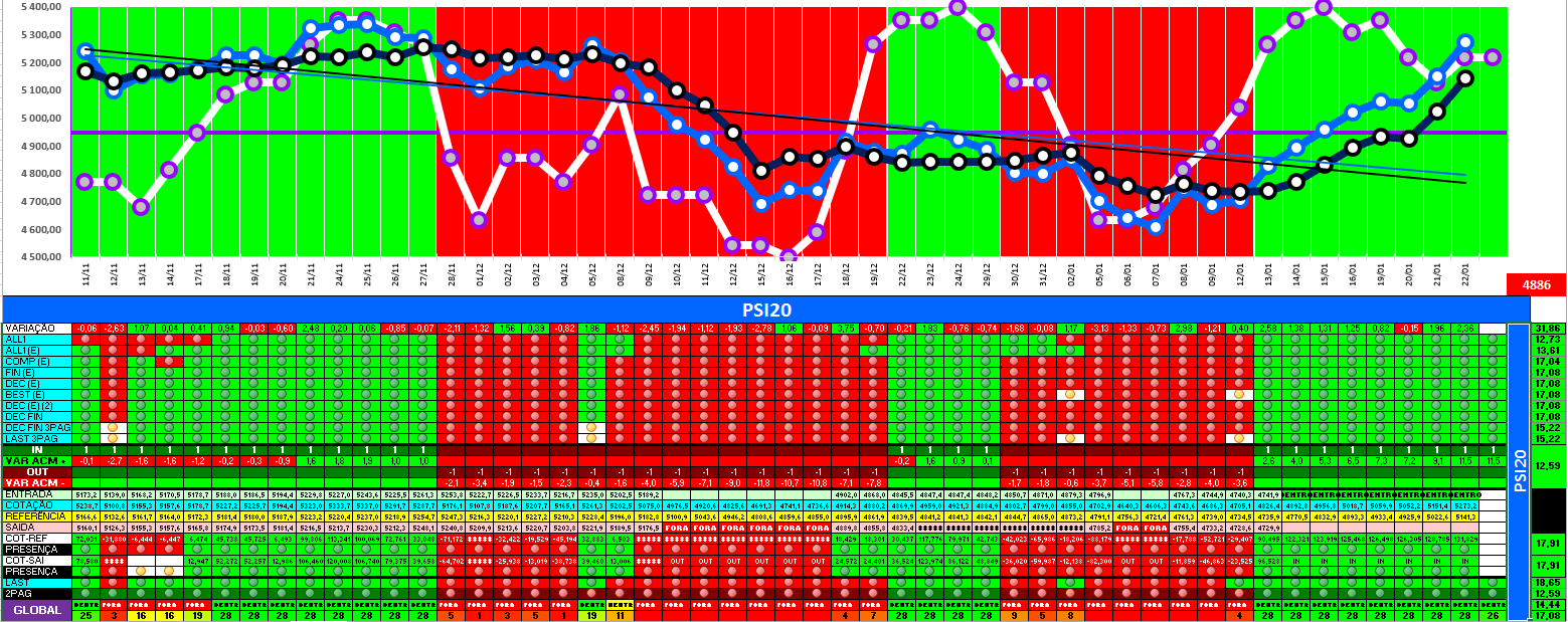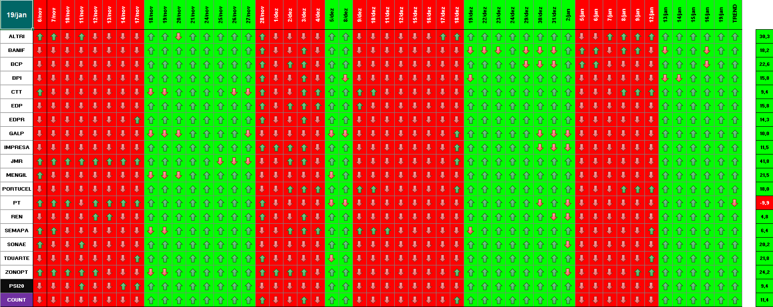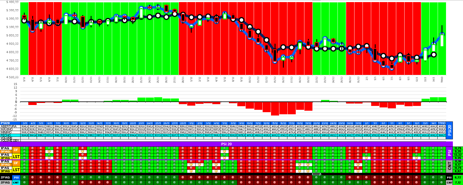 A modelo mais agressivo voltou a estar positivo. Hoje o indice PSI 20 ganhou energia... e deu sinal de arranque... ainda não totalmente confirmado.