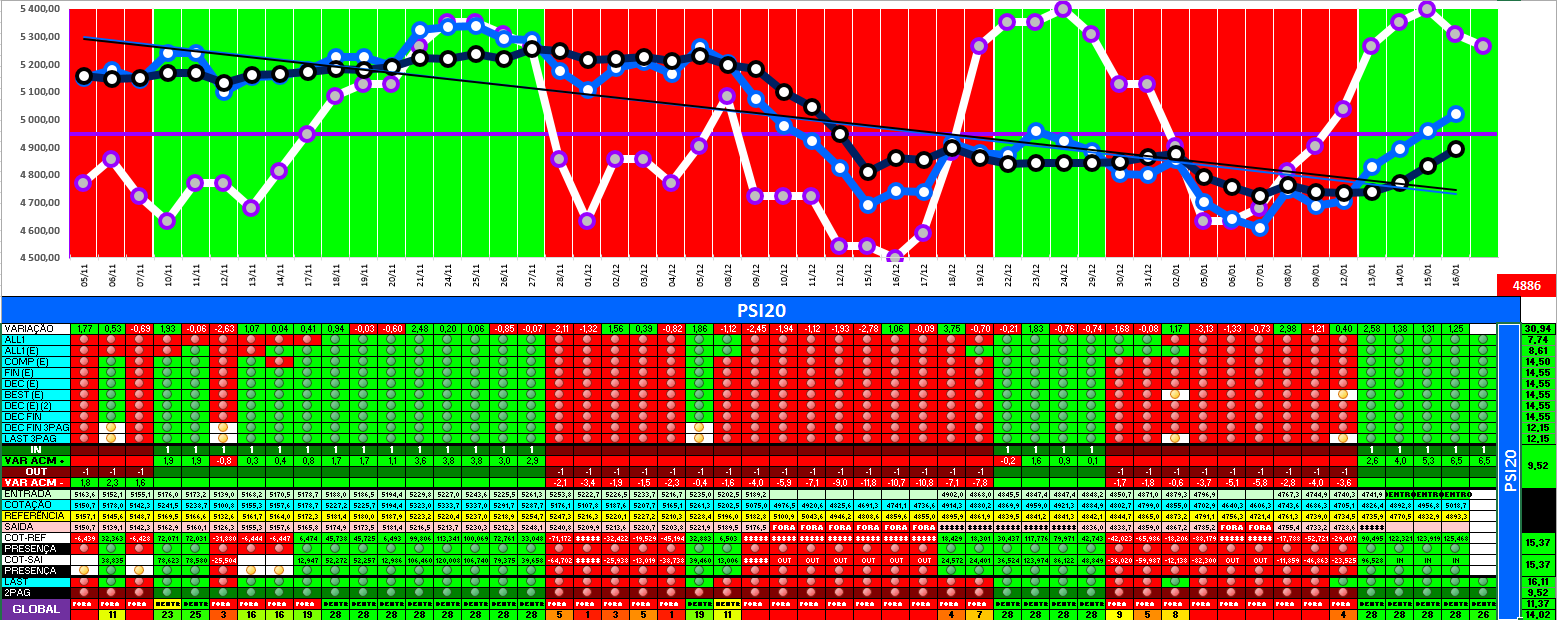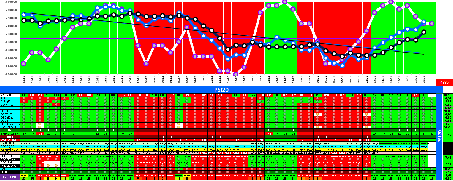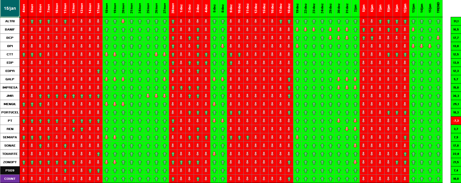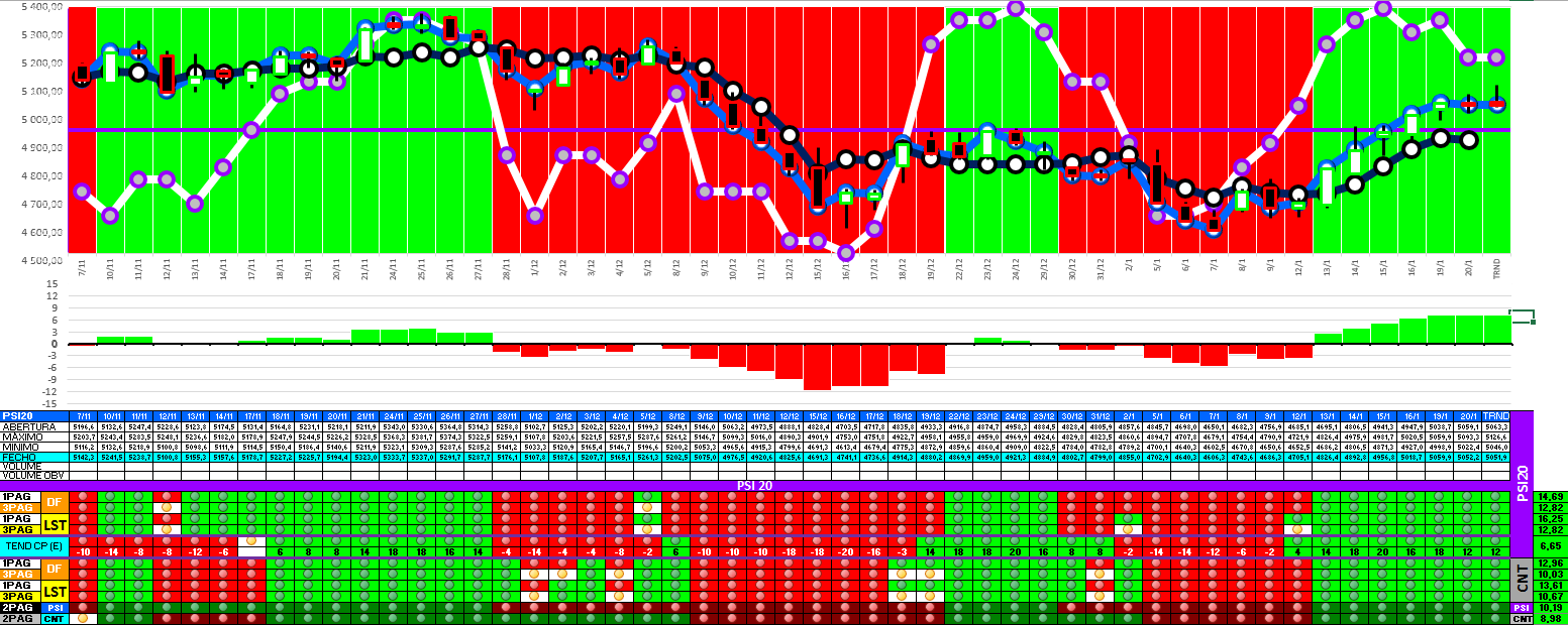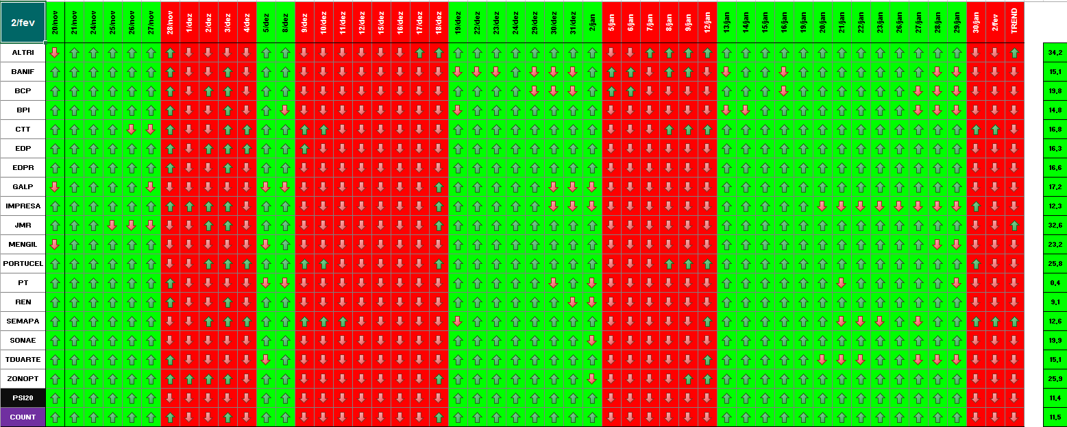 A modelo mais agressivo voltou a estar positivo. Hoje o indice PSI 20 ganhou energia... e deu sinal de arranque... ainda não totalmente confirmado.