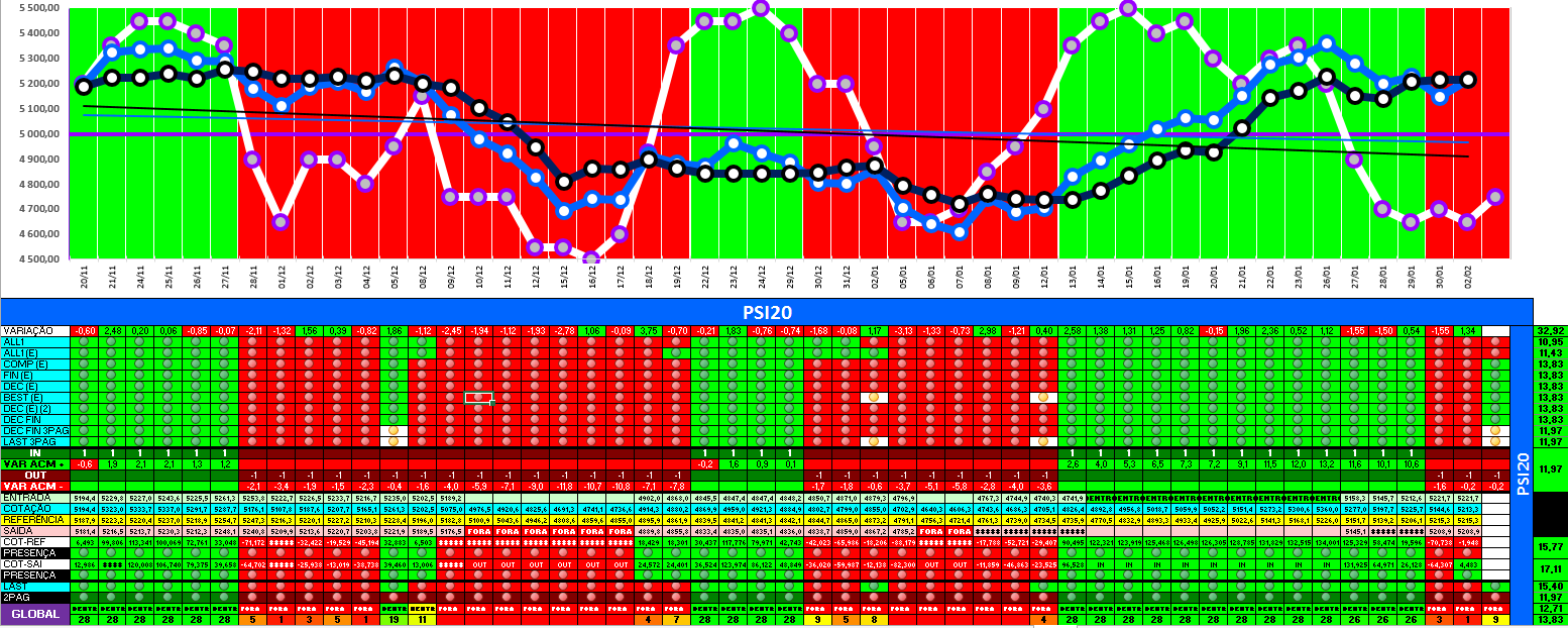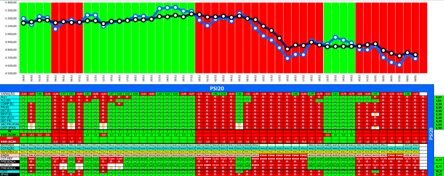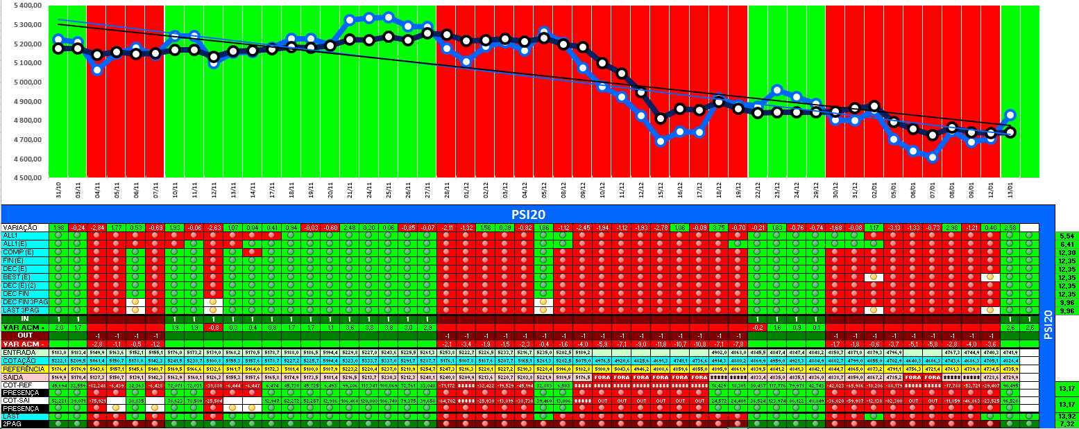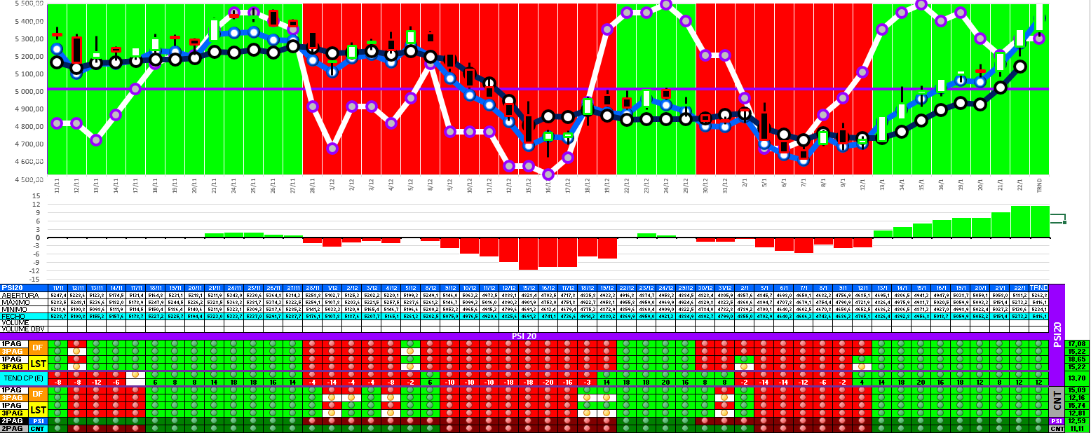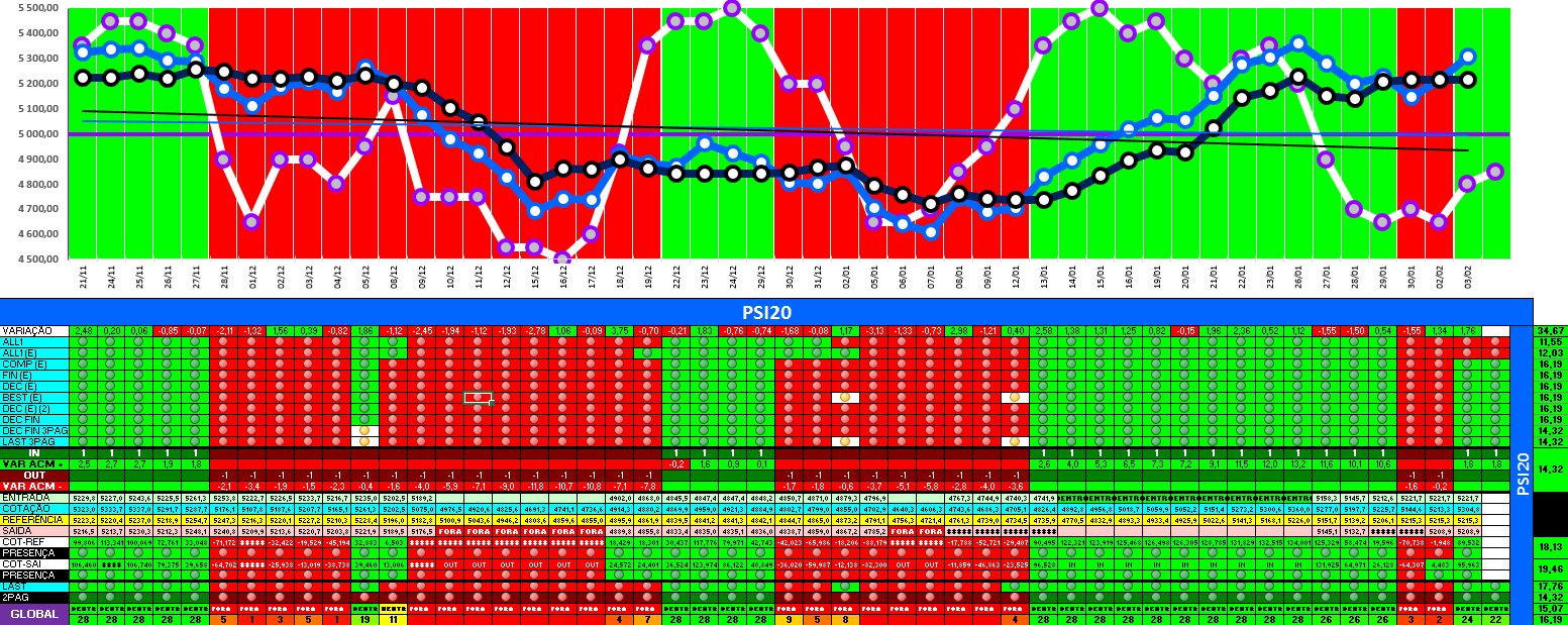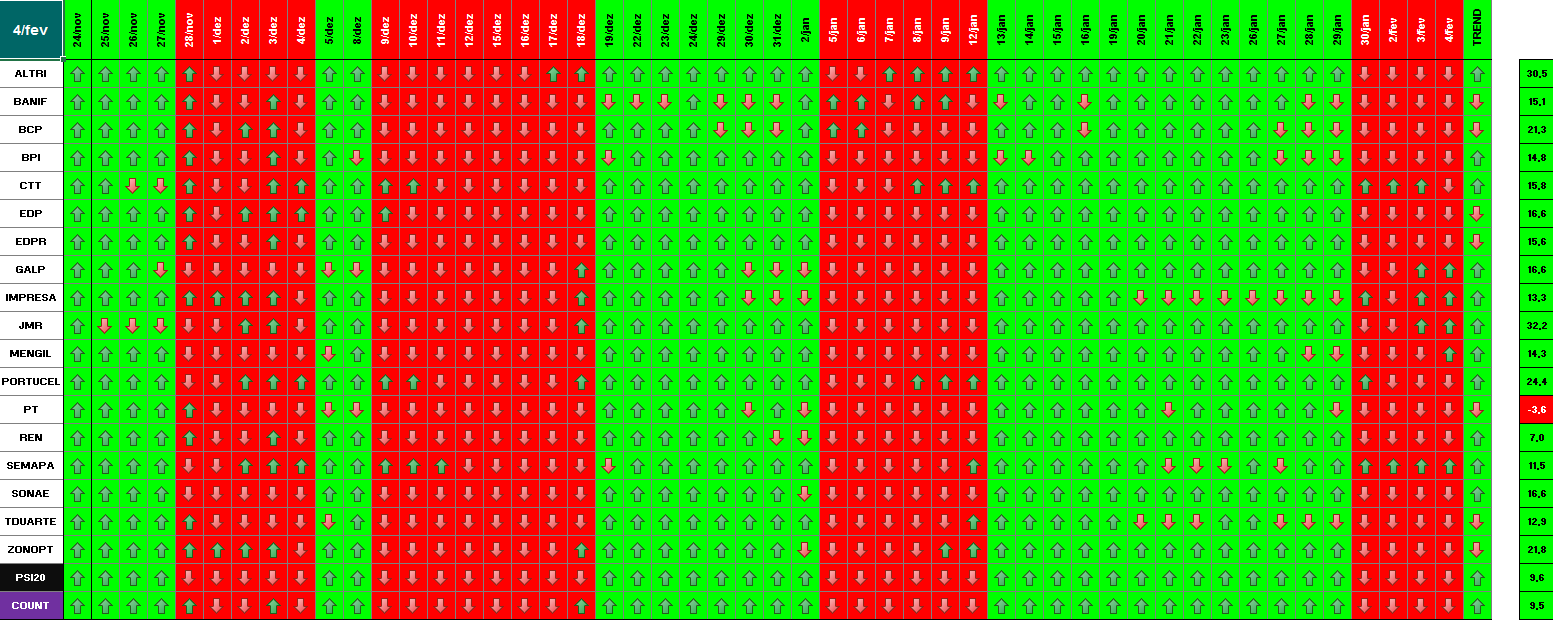 A modelo mais agressivo voltou a estar positivo. Hoje o indice PSI 20 ganhou energia... e deu sinal de arranque... ainda não totalmente confirmado.