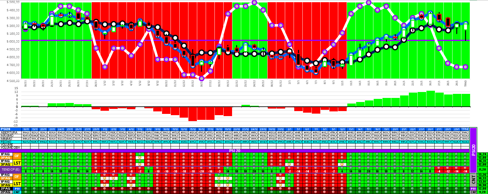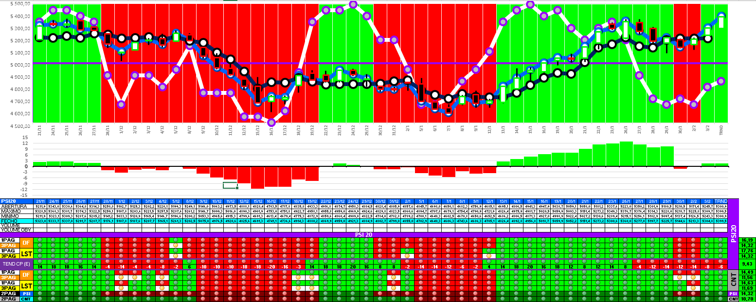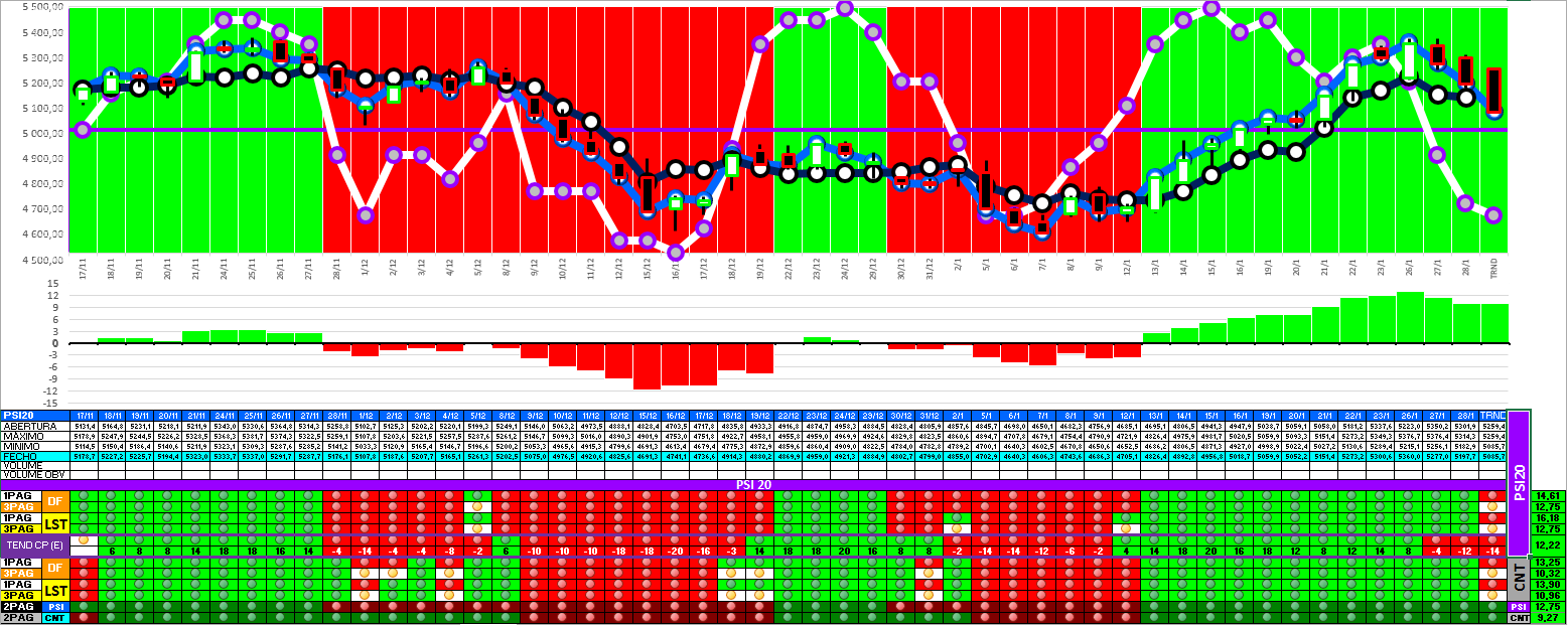 Continuo otimista, mas há que estar atento à LTDCP. Já é uma resistência com alguma relevância técnica, mas se for transposta o índice poderá rapidamente subir até à zona dos 5.287,61... o arranque dos 2 últimos dias foi razoável, mas precisamos de ver a evolução do volume e o comportamento de amanhã para tirar mais ilações.