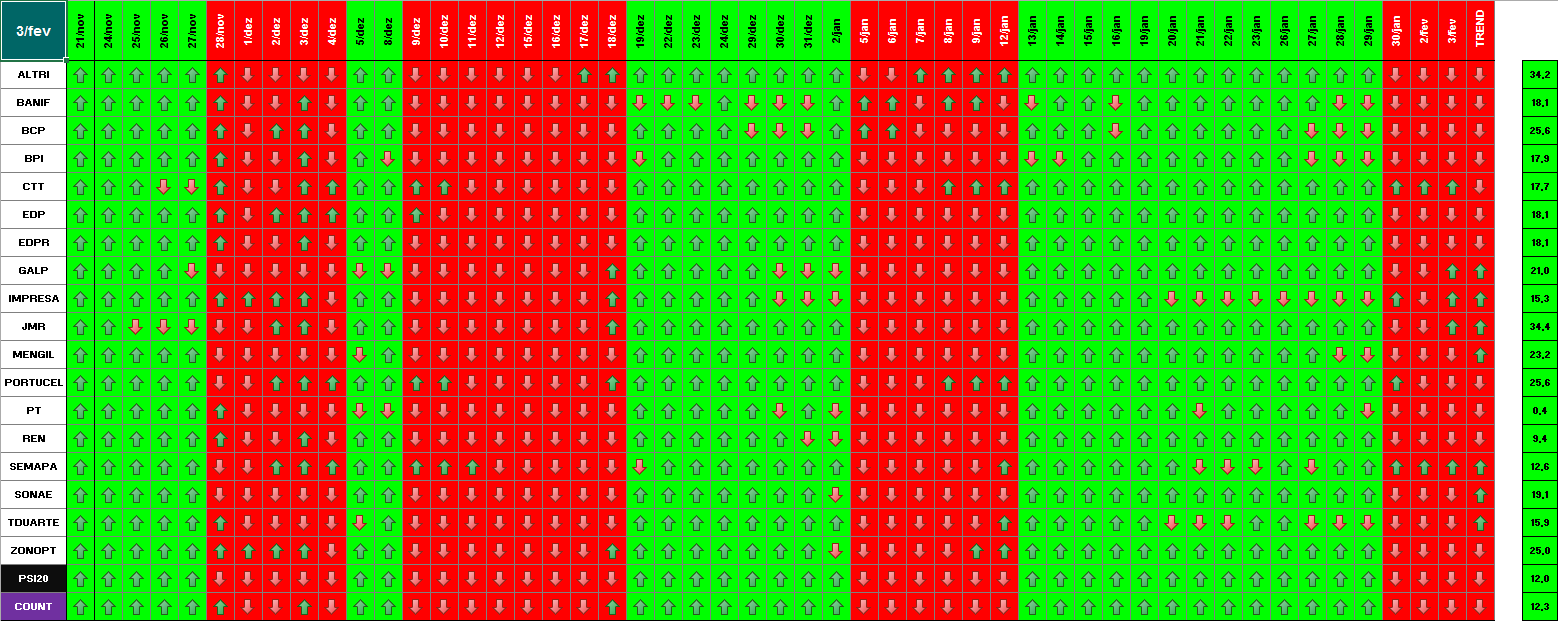Aproveito para informar que as habituais tabelas aqui apresentadas do PSI 20 estão agora na mesma sequência cronológica.
