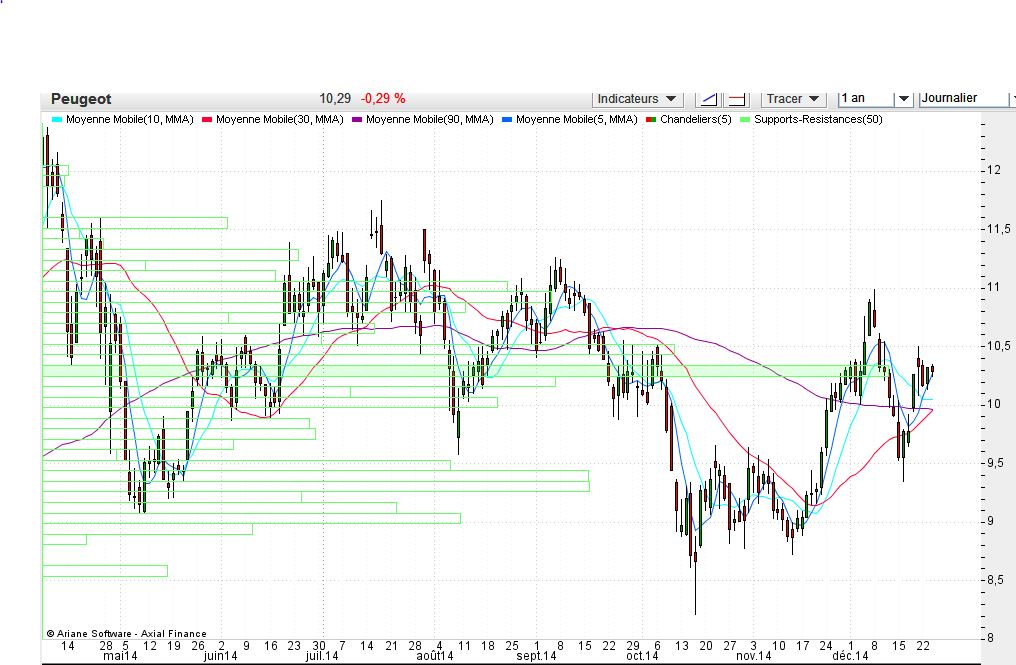 A peugeot com fortes possibilidades de quebrar esta ltd que vem desde Abril 2014, caso isso aconteça com forte volume poderá no curto prazo chegar à zona dos 12€, neste momento já cota acima desta linha, mas ainda muito tempo para o fecho, e um fecho abaixo desta linha pode fazê-la descer novamente à zona dos 10€. A minha tentativa de analise para o curto prazo.