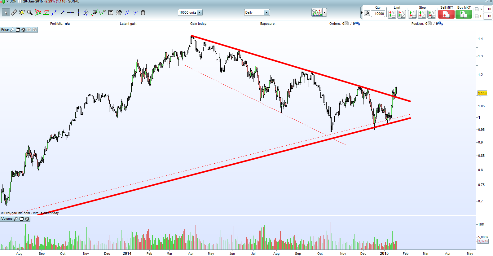 Rompeu a linha de tendência descendente e vamos ver com se comporta agora... as perspetivas são boas...