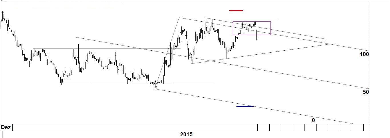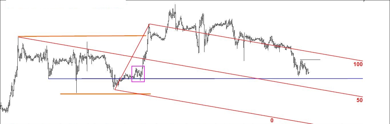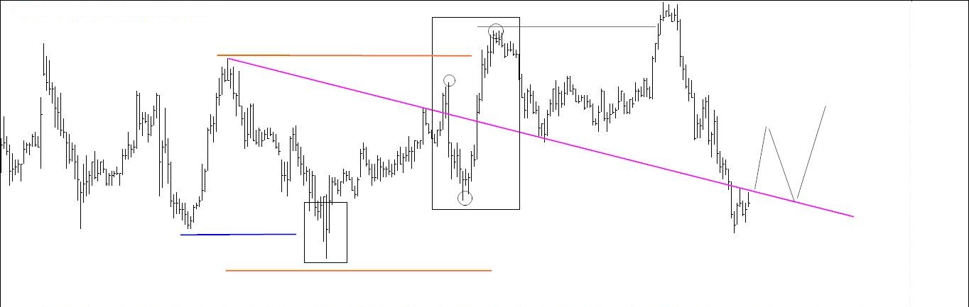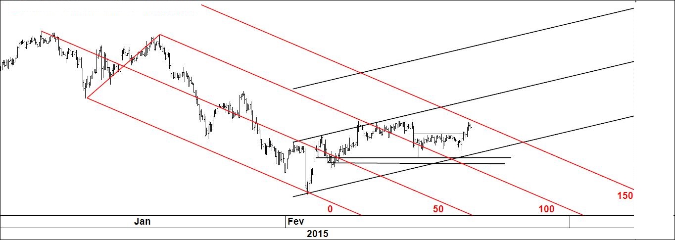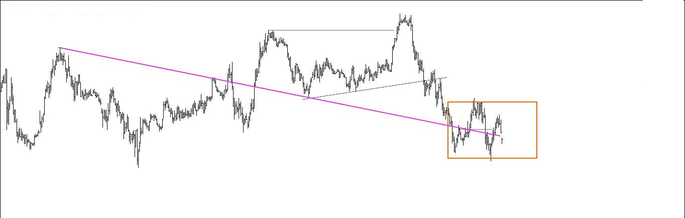 Pela última vez coloca-se aqui o gráfico 1. Como já tem muita informação para o meu gosto vou apagar tudo e aproximar-me do preço pois só assim consigo ver os especuladores andam a fazer (gráfico 2).