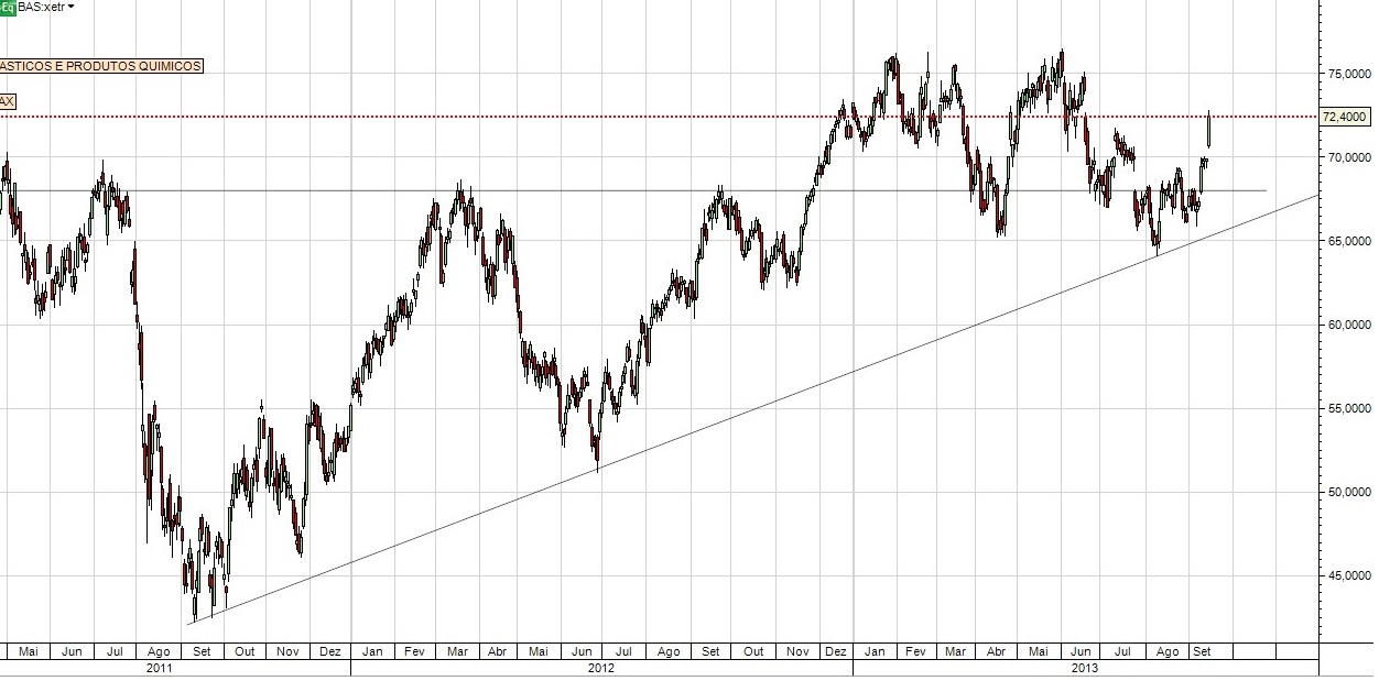Após ter feito máximos absolutos acima dos 73 a BASF está a corrigir um pouco. Não me importaria de a apanhar num eventual reteste aos 68