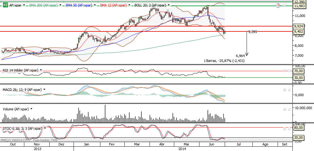 Boas, havia um suporte na zona dos 7.14 que tinha aguentado a acção no inicio de agosto, parece-me que o quebrou e está a confirmar, talvez mais uns dias para termos mais certezas, a proxima zona talvez seja nos 5.7 que serviu de suporte em setembro de 2013, a manter-se esta tendencia negativa, se juntar-mos os problemas economicos/financeiros que a europa ainda enfrenta, os problemas geopoliticos ucrania/russia, parece-me que tem caminho aberto até essa zona.
