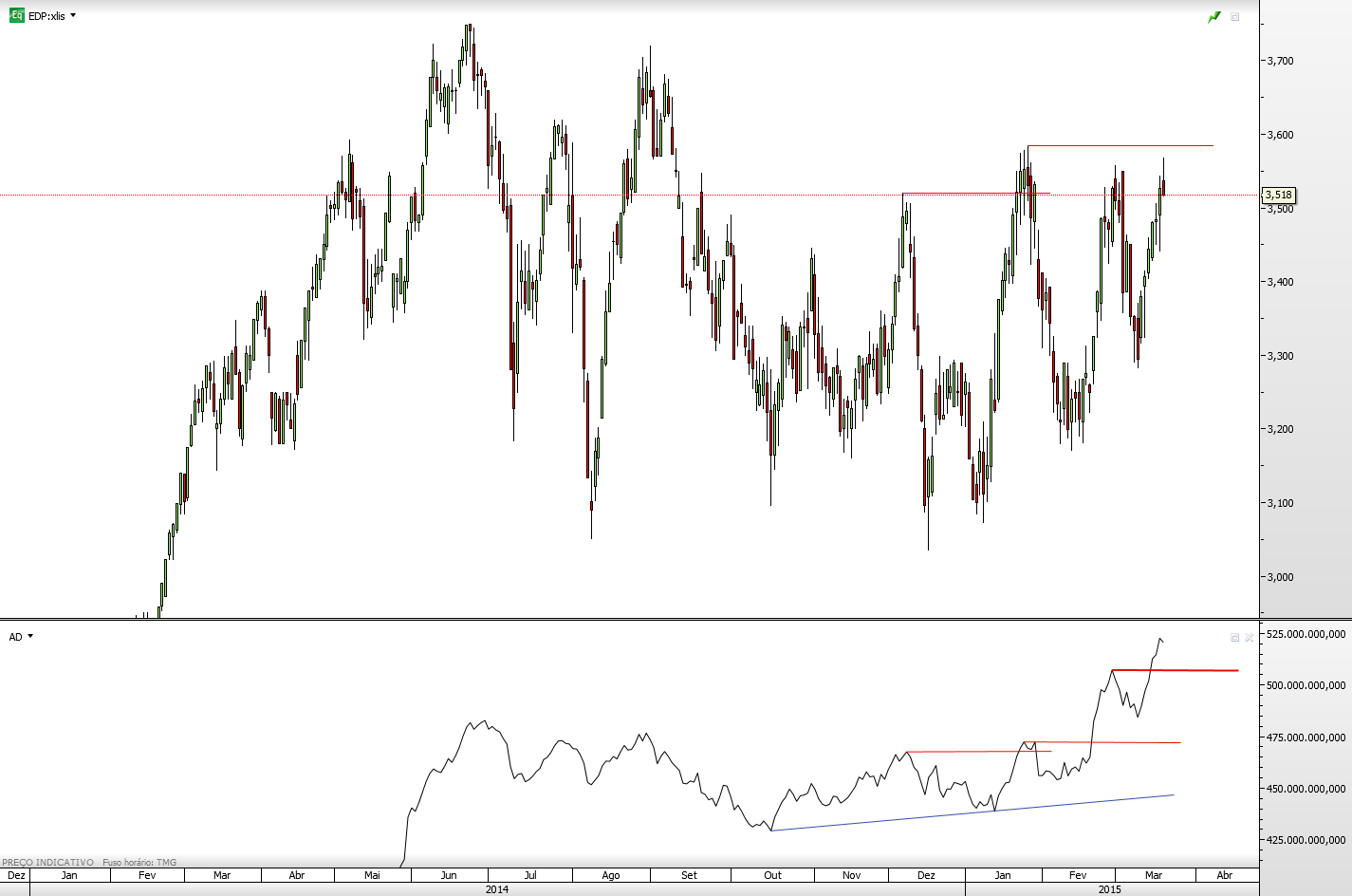 Já confirmei o fecho e confere com o valor 3,553, contudo deixo o gráfico da minha plataforma e penso que ainda estamos dentro do valor da tendência, com mais tempo irei confirmar o volume numa outra plataforma.
