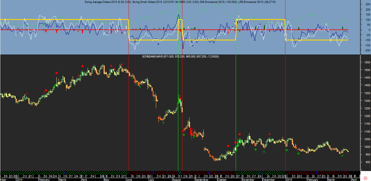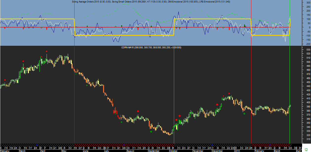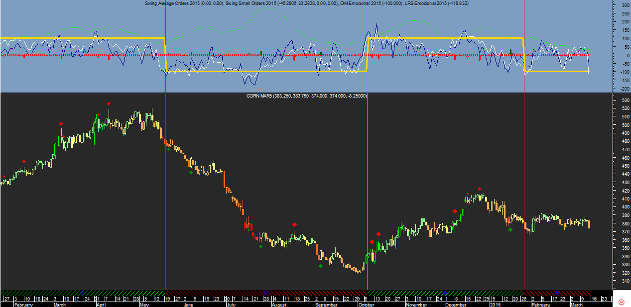 Aliás precisamente na última sessão da semana o indicador que determina a tendência, o “Rating Emocional de longo prazo” de cor branca no gráfico diário voltou a reforçar a força da tendência negativa à data atual, ao registar um valor de -119, claramente abaixo dos -100 pontos, registando uma fraqueza técnica bem marcante no Corn apesar de estar ainda e para já a perder dinheiro na trade.