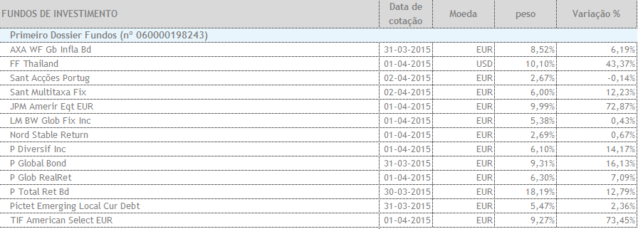Suponho que o quadro seja de um excel que tenhas. Podias facilmente (e tem extrema importância) colocares o peso em % que cada fundo tem no total da carteira.