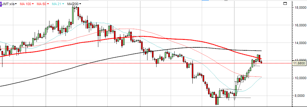 Não resisto em colocar a concorrente directa da JMT na Polónia (TESCO) já que foi trazida por mim umas semanas atrás, que apresenta o que chamo ser uma figura consistente e mais segura para entradas longas. Ao contrário da JMT, não foi esticada ao limite, consolidou e hoje teve a MME50 a ultrapassar a MME200 valorizado +2%.