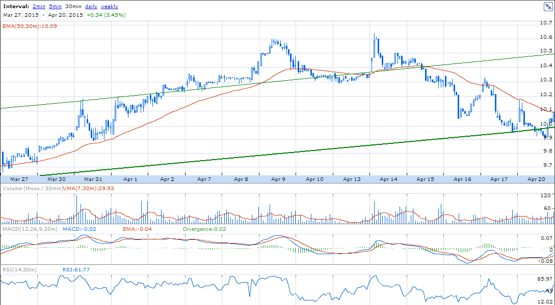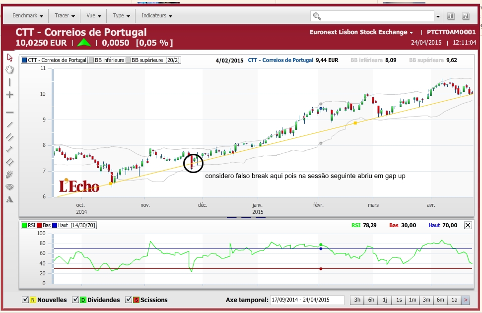 Do meu lado reforço de long que já tinha (por acaso ao mesmo valor de 10,00) pelo motivo de estar em cima do minimo do canal do diário e 4h. Entradas num momento em que a Grécia caminha para a bancarrota são sempre arriscadas mas se não se arrisca.... Stop curto por baixo da quebra do canal.