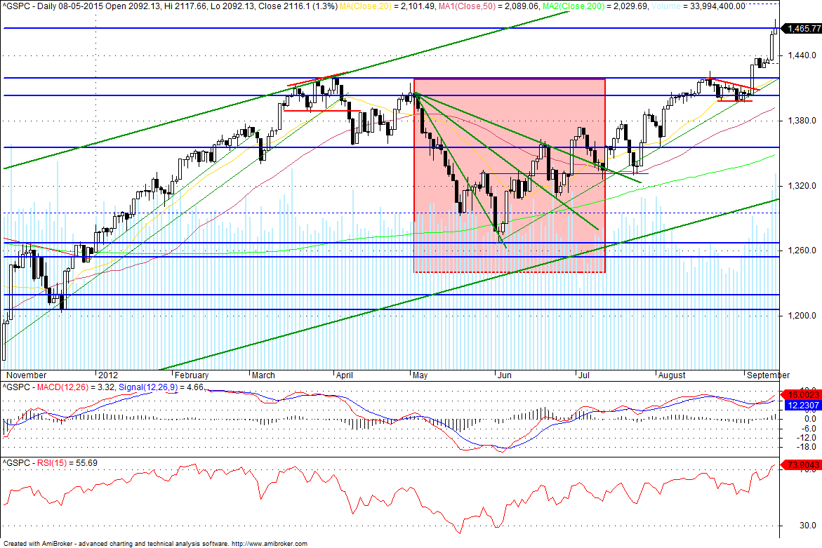 Concordo inteiramente , na minha perspectiva aqui ou mais acima o topo médio prazo está feito, agora é esperar pelo inicio da subida de juros da Yellen ( provavelmente Setembro ) e ai já deveremos ver alguma correcção e volatilidade significativas.