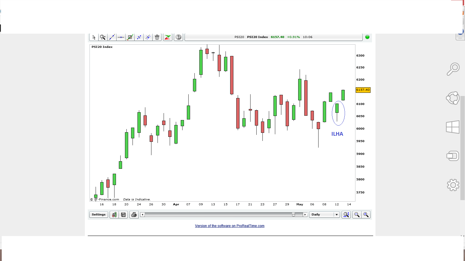 No gráfico não está a vela de hoje.