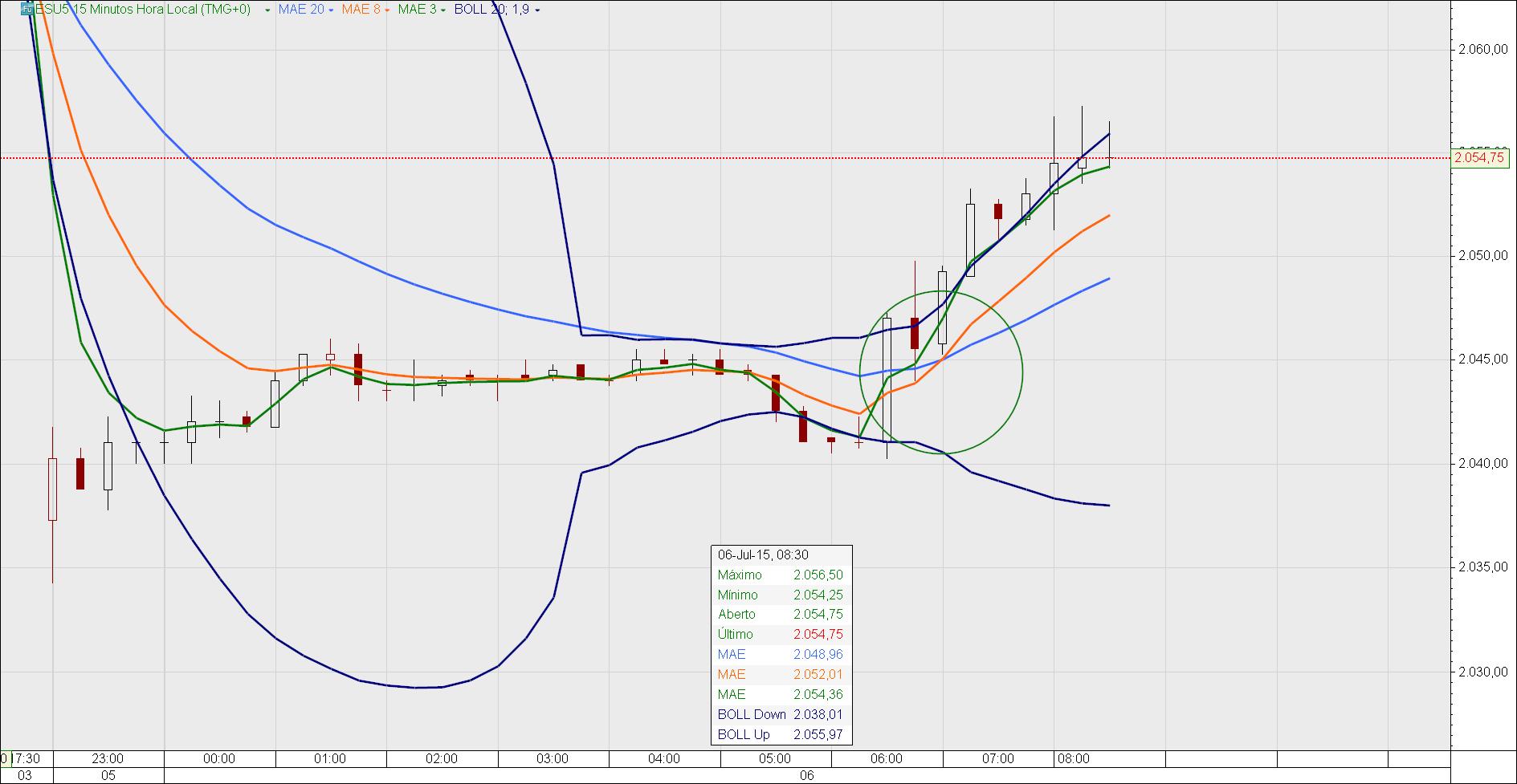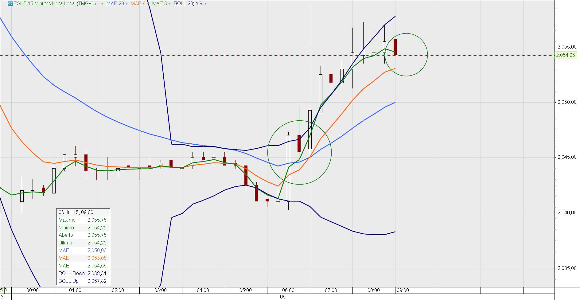 Simplificar ao máximo é isso que se quer com o uso das três médias exponencias com todas as suas características sempre com a formação de um padrão correto para a entrada na posição em períodos de 15 minutos/5minutos.