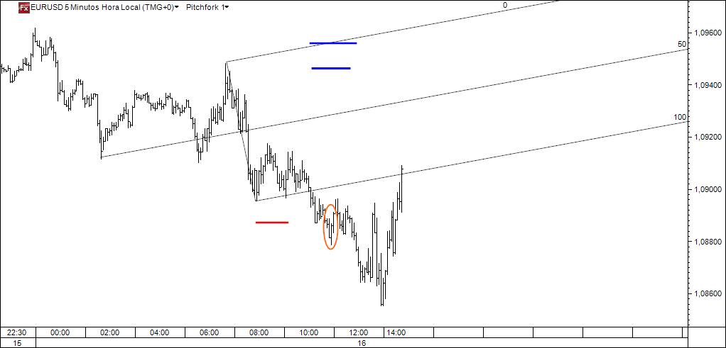 Este é um negócio realizado usando o time frame de 5 m para aproveitar um evento (nos antípodas, portanto, do investimento para o médio-longo prazo).