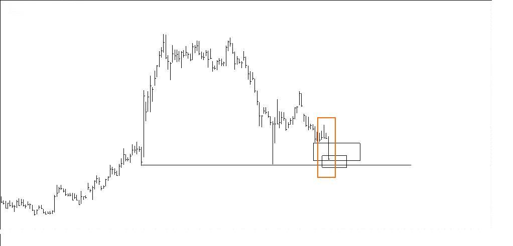 Perante a quebra do pivot relevante, o risco foi colapsado: uma valorização que é superior a 10% e inferior a 30%, com apenas um dia de exposição ao mercado, não se pode transformar num negócio perdedor tal como inicialmente delineado. Colapsar o risco não é sinónimo de stop em b/e.
