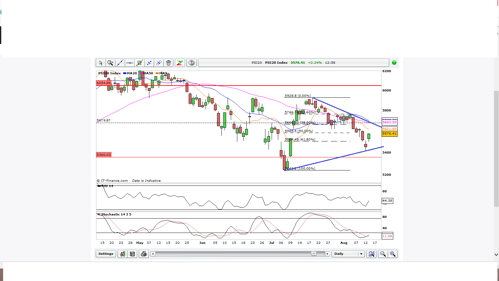 [ESTRATÉGIA DayByDay-ÍNDICES - CFD's - curto prazo]: LONG - LONGO »» PSI20 - Portugal 20 (PORT20.I) com objectivo @ 5377 e stop-loss @ 5624.{IMPORTANTE: Informação produzida pela empresa independente de "Research" - DayByDay [regulada pela AMF] - não constituindo uma oferta de investimento o produto financeiro possui risco que poderá não ser ajustado ao seu perfil}