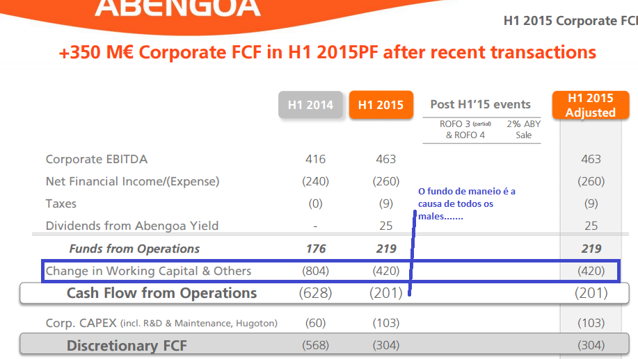 Artista Romeno Escreveu:como eu exemplifico nesta imagem, empresas com fundo de maneio deficitario nem sempre tem vantagem em crescer, pois esse ano pode ser pro ar, poderás dizer que se a empresa crescer so um ano e nao crescer mais isto nao se verifica, mas é preciso muito cuidado com empresas industriais com crescimento agressivo... vejamos por exemplo a ABENGOA como acabou a ser intervencionada pelos bancos com um golpe na gestão