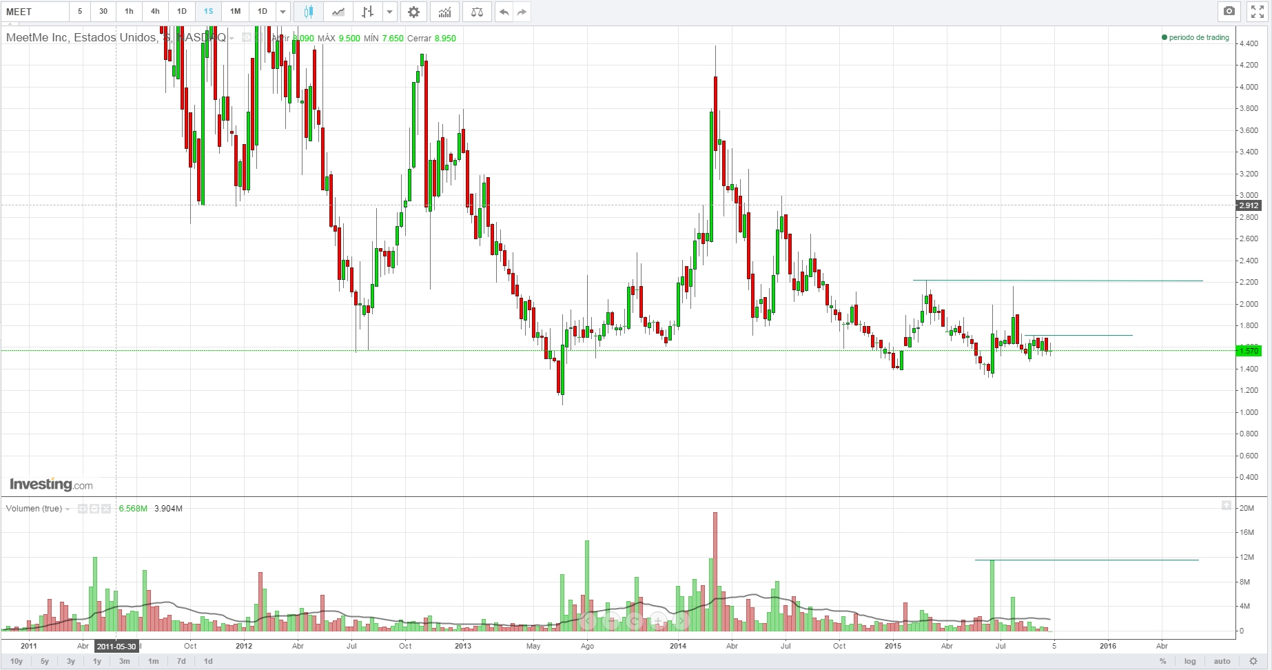 Pelo gráfico semanal gostaria de ver a quebra em alta de 1.71$ se fosse para entrar neste título, e ver se realmente começa a ter força para ir à área de 2.20$.