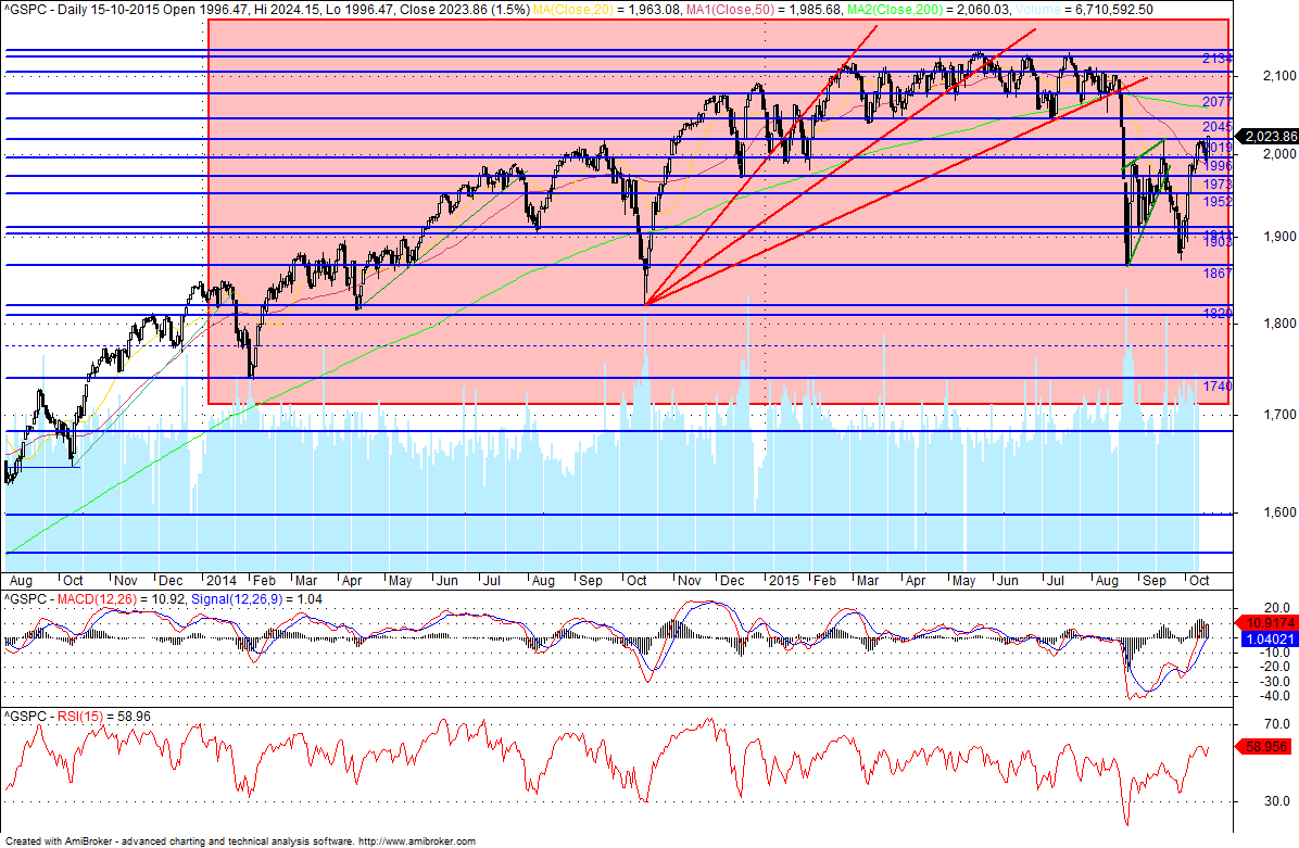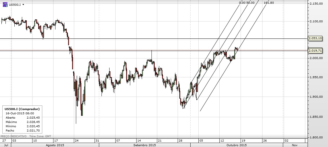 Estando agora acima do que antes era resistência (linha 161 do garfo e resistência horizontal), o mais provável é que agora funcione como suporte, devendo o stop estar abaixo, e como o "abaixo" não é longe, assumindo os 2050 como próxima resistência, a equação de risco-beneficio pode ser interessante.