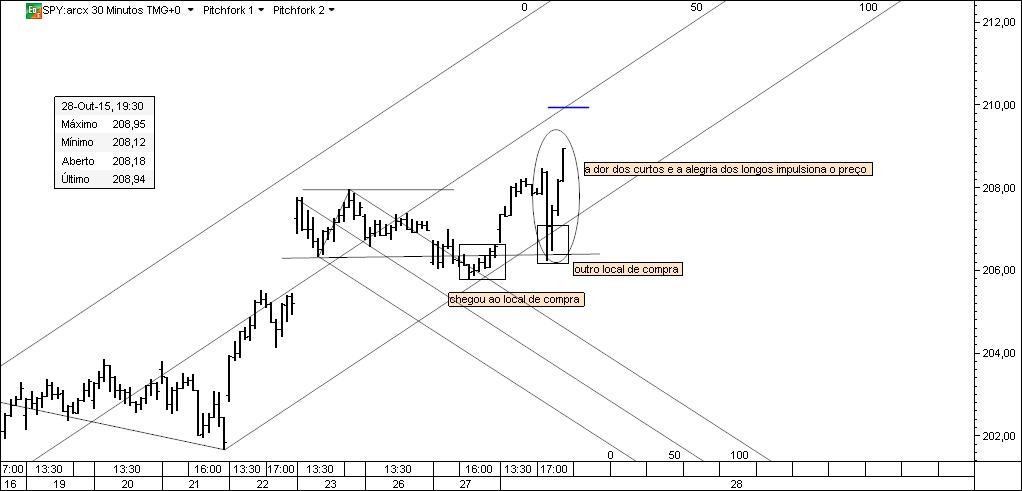 Chegou a vez de partilhar uma nova situação, agora no SPY. Os gráficos contêm todos os comentários que a situação exigia e foram datados para que não se coloquem dúvidas. O que se passou no SPY pode ser replicado no cash e nos futuros do SP500. Qualquer relação entre este negócio e "parte cógnita do Caldeirão" é pura coincidência.