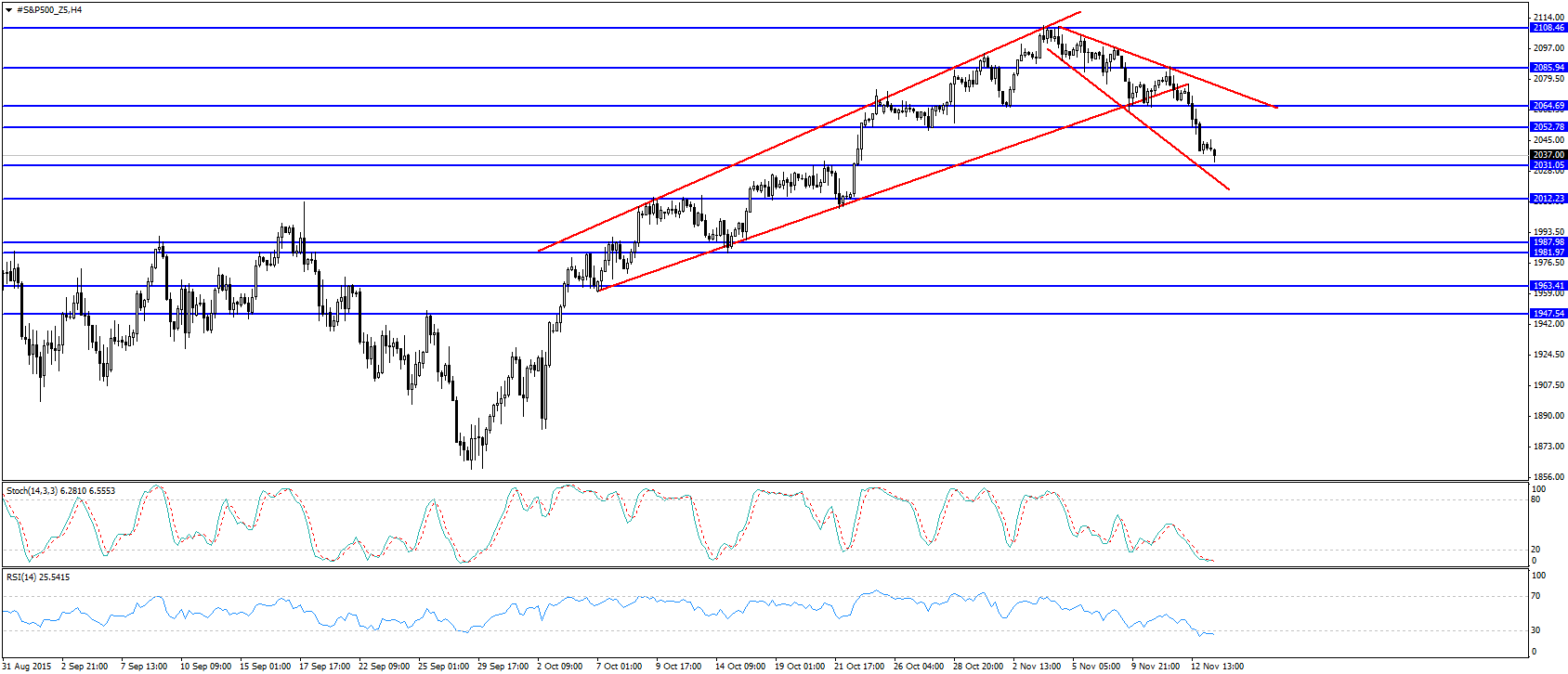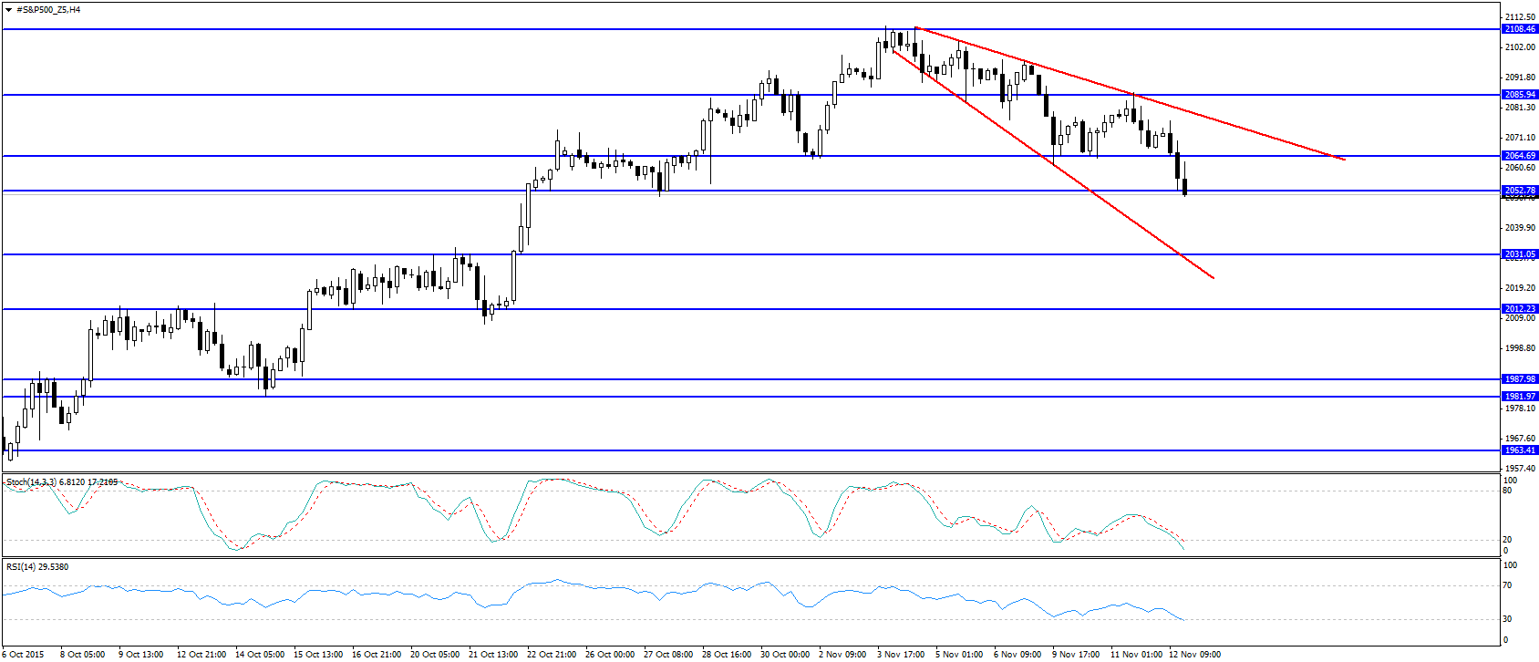 O sp500 quebrou a mm200 e pousou-se em cima do suporte, com uma vela feia.