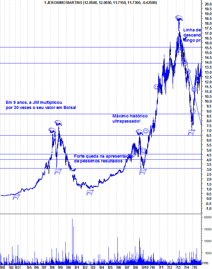 Desculpa mas discordo.. prespectivas de crescer porque ? Onde ?? Portugal ? Não me parece. Na Polônia já saturou o mercado e com o novo governo parece-me que a perspectiva de lucros crescentes acabou. Na Colômbia para já, não há nada de relevo. A JM estava nos 15 euros e eu dizia que a acção estava caríssima e todos me criticaram.
