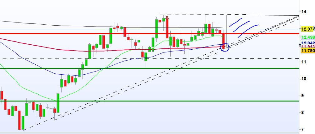 Bernie Madoff Escreveu:Fui stopado em parte da posição, ainda reforcei a 11,75 durante a manhã mas foi mais uma vontade de provar que tinha razão na estratégia, ou a vontade de não perder o guito...; a verdade é que não gostei nada de como estavam as coisas e voltei a sair a 11,83 e não passar o fim de semana a sonhar com velas verdes. Fechou abaixo da MME semanal dos 200 dias (o meu stop)