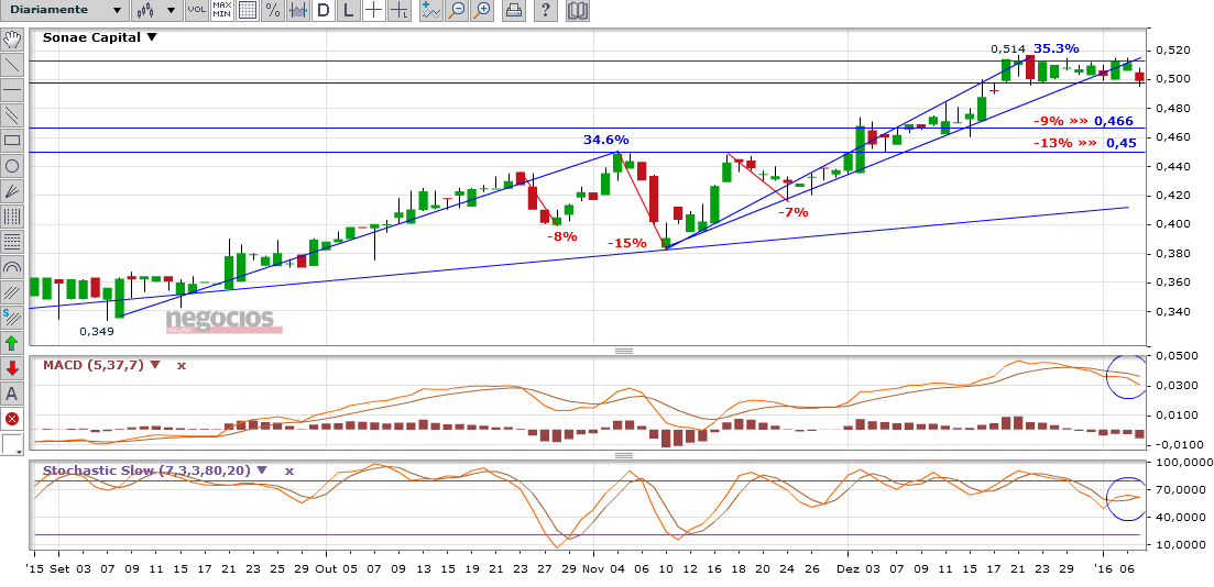 Está num ponto crítico. Se quebra o suporte dos 49cent, poderá haver um futuro nada risonho a curto prazo. Talvez uma paragem nos 0.45.