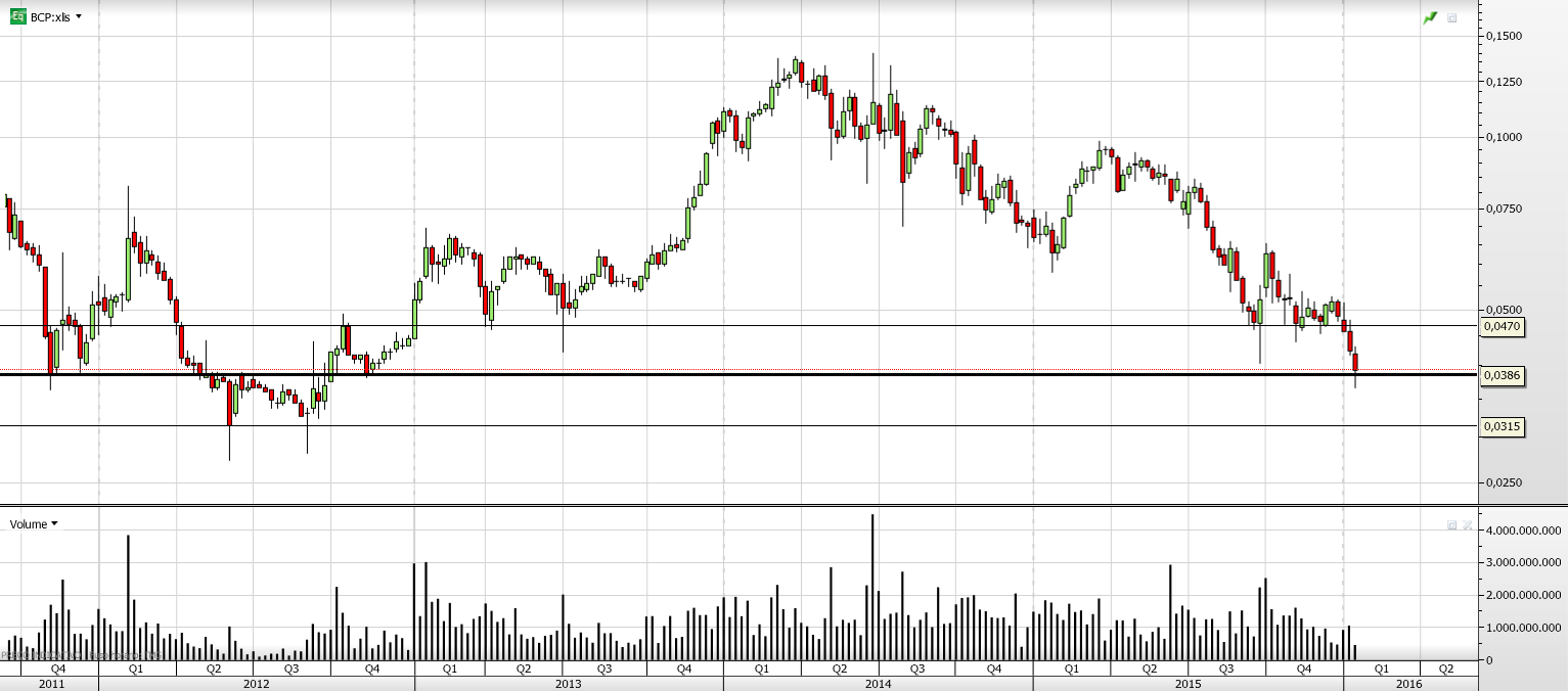 Quando ao BCP... enfim, nada que surpreenda. Quando reagir poderá voltar a fazer um movimento espetacular de subidas mas quem é que o quer tentar adivinhar? vale a pena? Até ao caso BES era mais difícil explicar os riscos de o fazer, porque na realidade falir de um dia para o outro era algo que não tínhamos, embora houvesse muitos casos em que não havendo falência havia uma perda quase total dos acionistas... mas depois do BES e agora também do Banif, fico estupefacto como é que alguém se consegue expor desta forma?!