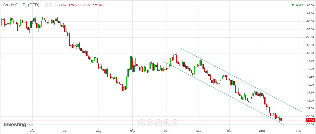 Segue a queda livre e está complicado de adivinhar fundos. Aqueles que defendiam os 25 e os 20 USD por cada barrilzinho poderão ver essa previsão satisfeita lá mais para a frente.