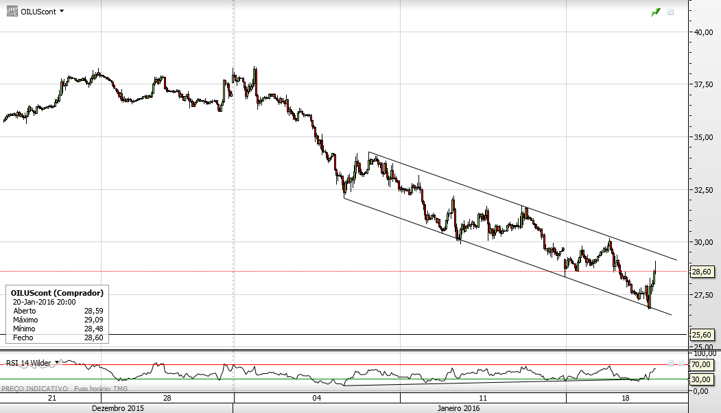 Não há ressaltos significativos. Desde a última vez, verificamos que nem sequer voltou a 32 USD (CL). Em vez disso, passou os 30 USD e já caminha para 28 e, quem sabe, menos ainda como o CLO, o Brent.