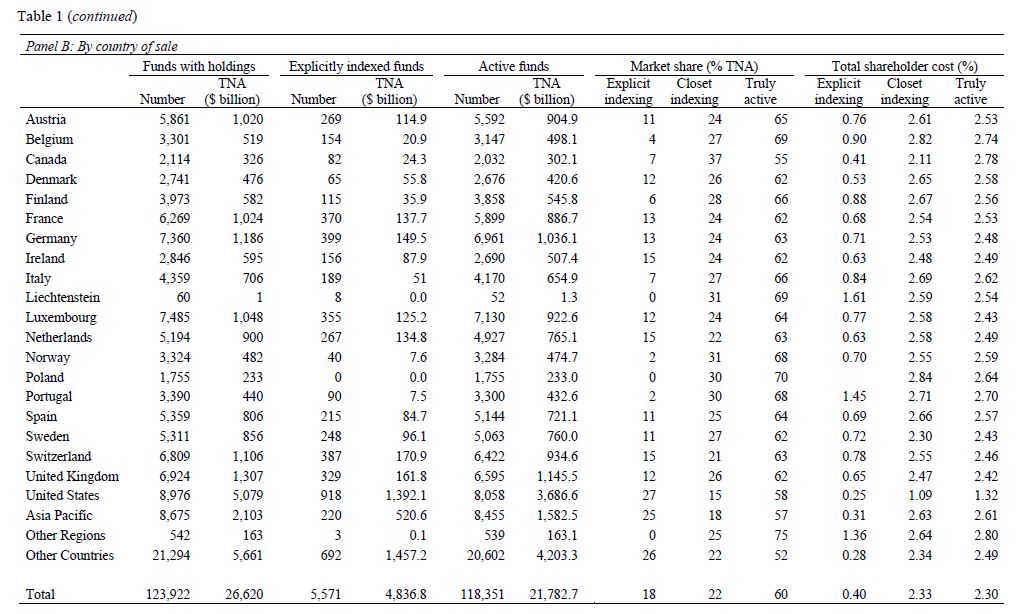 Specifically, we find that active funds have higher active shares and charge lower fees in markets with more explicit indexing. In contrast, active funds charge higher fees in countries with more closet indexing. These differences are economically important.