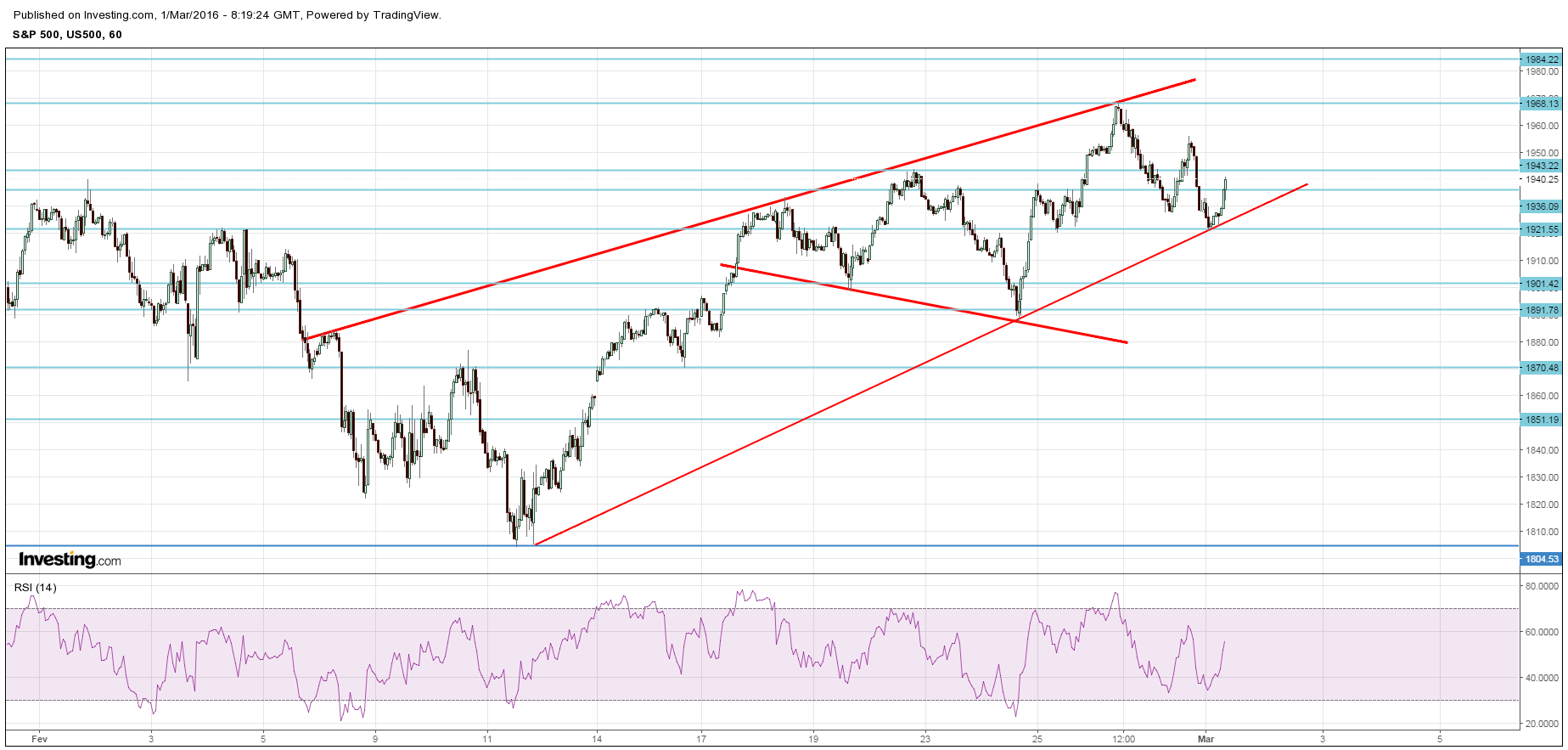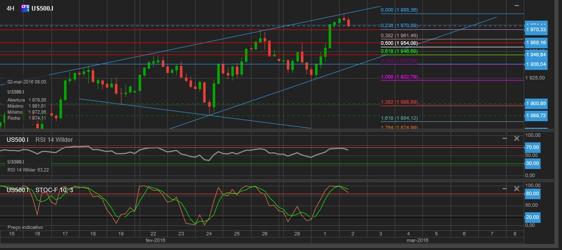 O S&P está a bater na LTA/linha inferior da cunha que o JAlves aqui colocou em conjunto com a broad, e também na retracção 61,8 no gráf 4H.