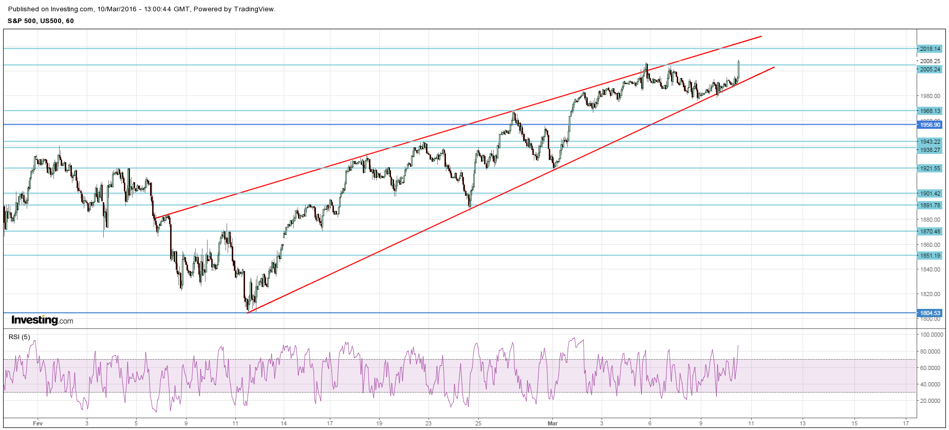 Aqui o WTI tambem pode ter um peso preponderante , pois se romper os 35 em alta, pode haver subida forte do OIL e impulsionar o SP500 por arrasto até á fasquia 2020-2040. Se WTI não aguentar o embate na resistencia o SP500 pode não chegar lá.