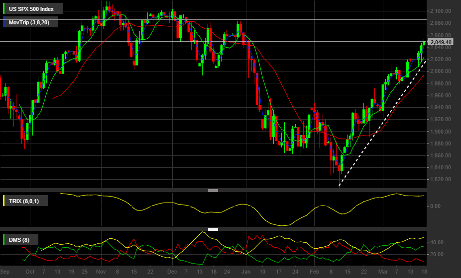 Parece haver um objetivo a atingir, os 2075 pontos. E se repararmos nos índices da Europa e no Nikkei verificamos que estão ainda longe da zona de sobrecompra.