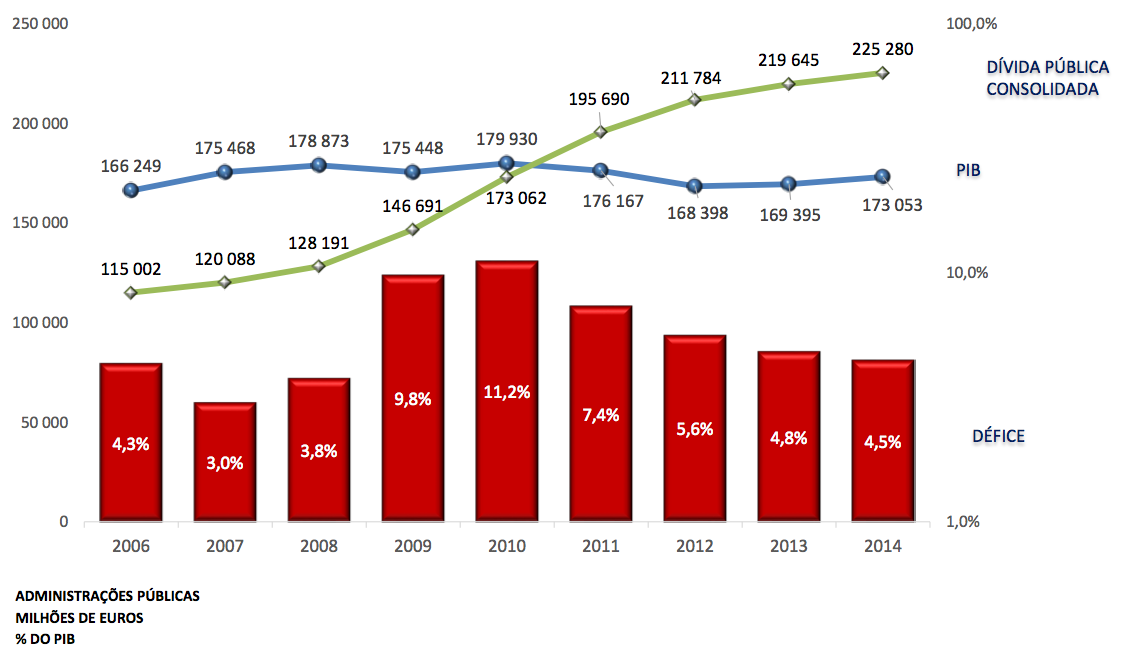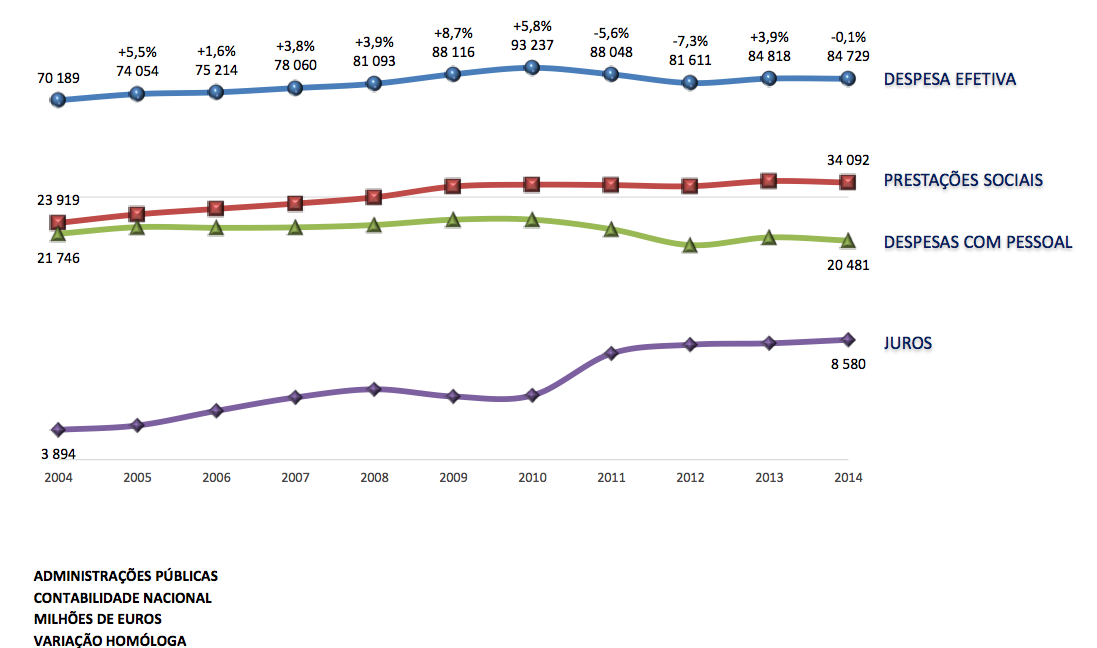 Em 2014, os encargos com a dívida corresponderam a 11% da receita obtida pelo Estado.