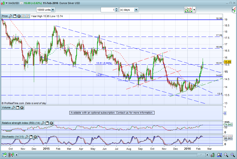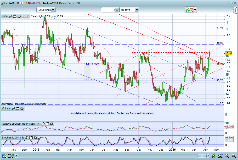 este ataque aos maximos relativos de curto prazo deverá ser para levar prata aos 19 e ouro aos 1500.