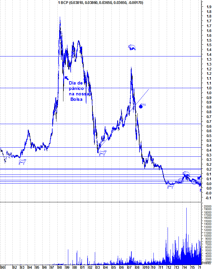 O BCP ainda vai ficar em território mais interessante porque vai baixar da barreira dos 3 cêntimos. O PSI 20 prepara-se para descer até aos 4500 pontos e o que é que vai acontecer ao BCP? O inverso? Claro que não!