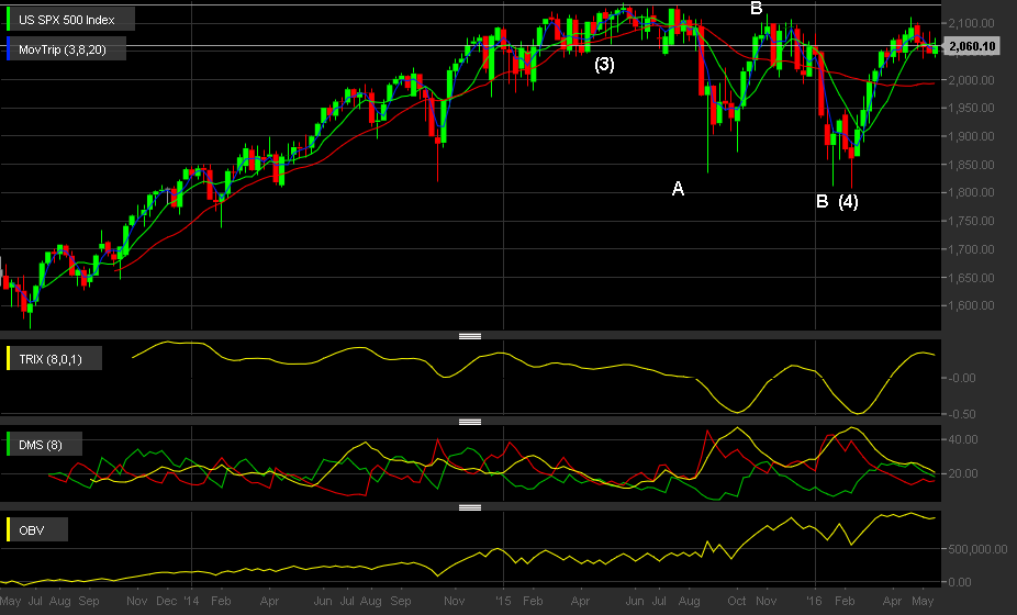 Tanto o diario como o semanal estao laterais mas com indicadores na compra,o obv continua vigoroso no semanal,relevando que nao está a haver desalavancagem,rompendo em alta o topo anterior já algumas semanas atras(para que gosta,este indicador costuma antecipar alguns movimentos).Para quem gosta de elliott penso estarmos na onda 5 do super ciclo a romper maximos,cujo o target mantenho nos 2350pts(erro:a letra ao lado do 4 é a C e nao B).Pelo square 9 estamos a respeitar ainda o suporte dos 2038pts que corresponde aos 90graus entre maximos e minimos relativos e o proximo alvo de "curto" prazo tambem irei manter nos 2149 pts,portanto nada mudou desde há umas semaninhas até agora.A quebra em fecho dos 2038pts fará repensar a estrategia,ficam os graficos