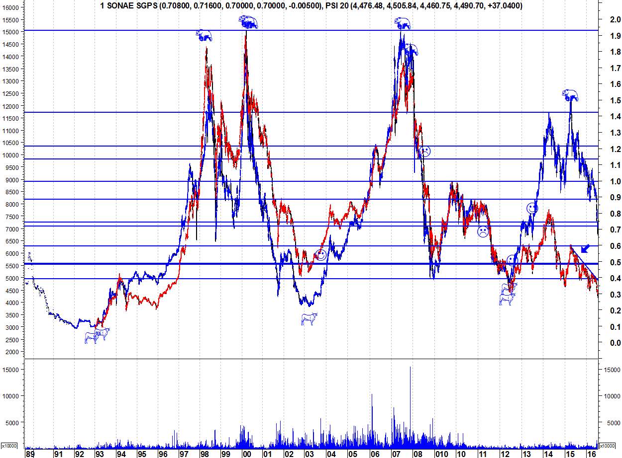 Parece portanto que a sonae realmente ficou uma ação alavancada naturalmente... mas cotada a 0.40??? Hmmmm......