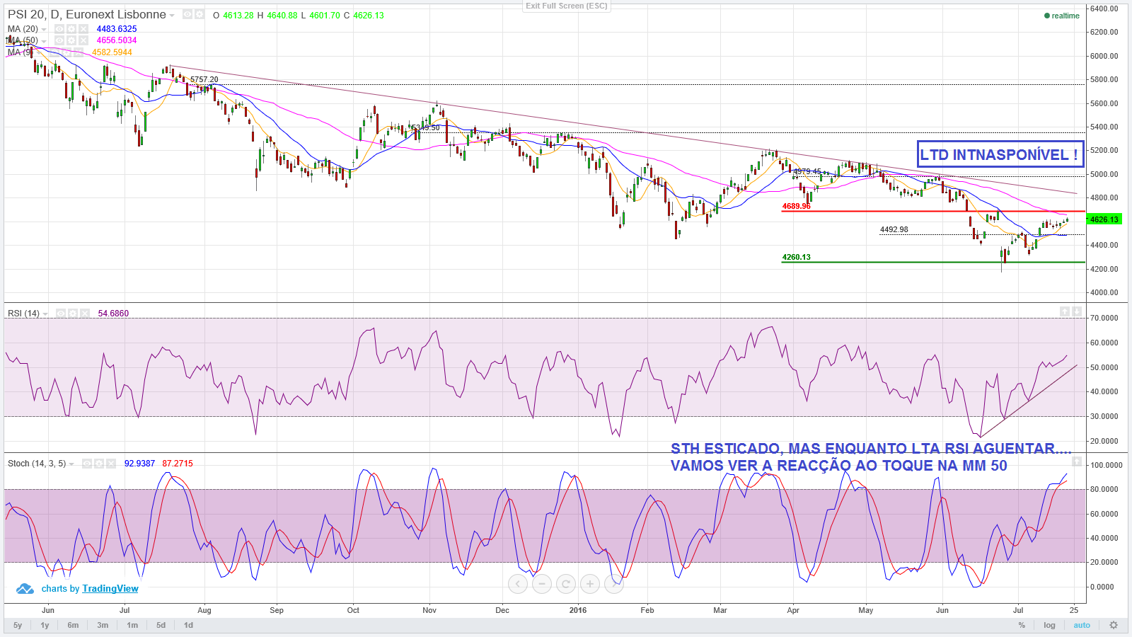 Não sou muito de ligar a noticias, mas com o polémico caso turco a acontecer tenho acompanhado os desenvolvimentos, quer pela TV quer pelos jornais. Pelo meio tenho lido noticias preocupantes, como a do FMI sobre a banca portuguesa e italiana, à beira da desgraça completa e de pelo caminho contaminarem o mundo. Tive também a oportunidade de ouvir o ACosta dizer que se o Novo Banco não for vendido liquida-se (estilo café lá do bairro), também temos um Brexit em curso e um perigoso Ditador Islamo-Nazi na Turquia (isto sim, preocupa-me muito). Posto isto e com cenários tão adversos fui ver os gráficos do PSI(xx) e fiquei surpreendido... o Prognóstico é positivo.