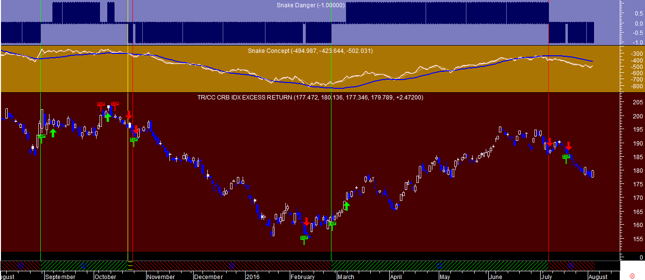 A primeira delas diz respeito à passagem de uma posição neutra para curta ou vendida nos futuros do Milho (Corn), através da combinação dum sinal de venda que se vai mantendo na escala diária e da passagem de comprado para neutro na escala semanal.