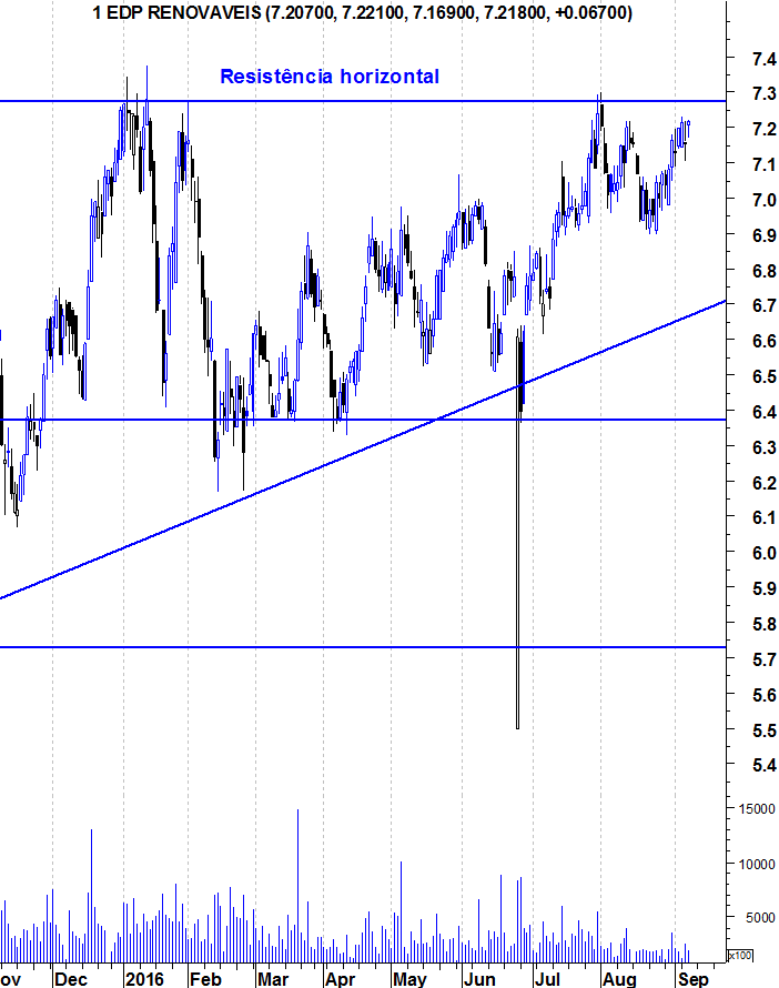 A resistência dos 7,25-7,30€ – que tem feito a acção recuar nas últimas tentativas que a mesma fez para a ultrapassar.