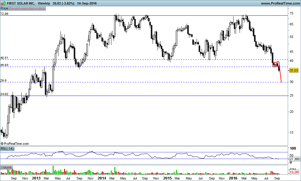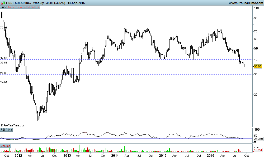 Hoje dei um tirinho neste titulo a $34,51. Perece-me uma empresa sólida e tem uma politica agressiva de I&D (cerca de 14% do Gross Profit), mais tarde ou mais cedo terá resultados desse trabalho. Penso que tem vindo a sofrer com o abrandamento dos incentivos às energia "limpas" nos EUA e pelo facto de o preço do petróleo estar mais baixo, o que tendencialmente poderá provocar uma menor urgência de investimento neste tipo de produção de energia. Na minha perspetiva esse caminho não terá retorno, o investimento em energias "limpas" terá que ser um investimento em massa e tudo leva a crer que é esse o caminho, esta empresa a par de outras empresas deste sector irão ter sucesso (sem euforias baseadas em suposições, como no inicio do século, mas agora com dados reais com muitos MW a serem produzidos por esta via).