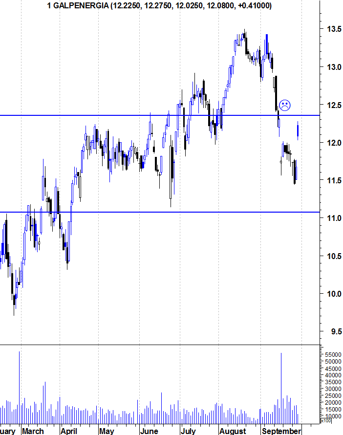 Mais uma boa recuperação diária da GALP. Depois de ter acompanhado a onda vermelha que grassa pelos mercados mundiais que a levou a baixar dos 12€, já ressaltou e já ultrapassou os 12,10, transacionando com um bom volume. Não me admiraria se em breve andasse pelos 13.